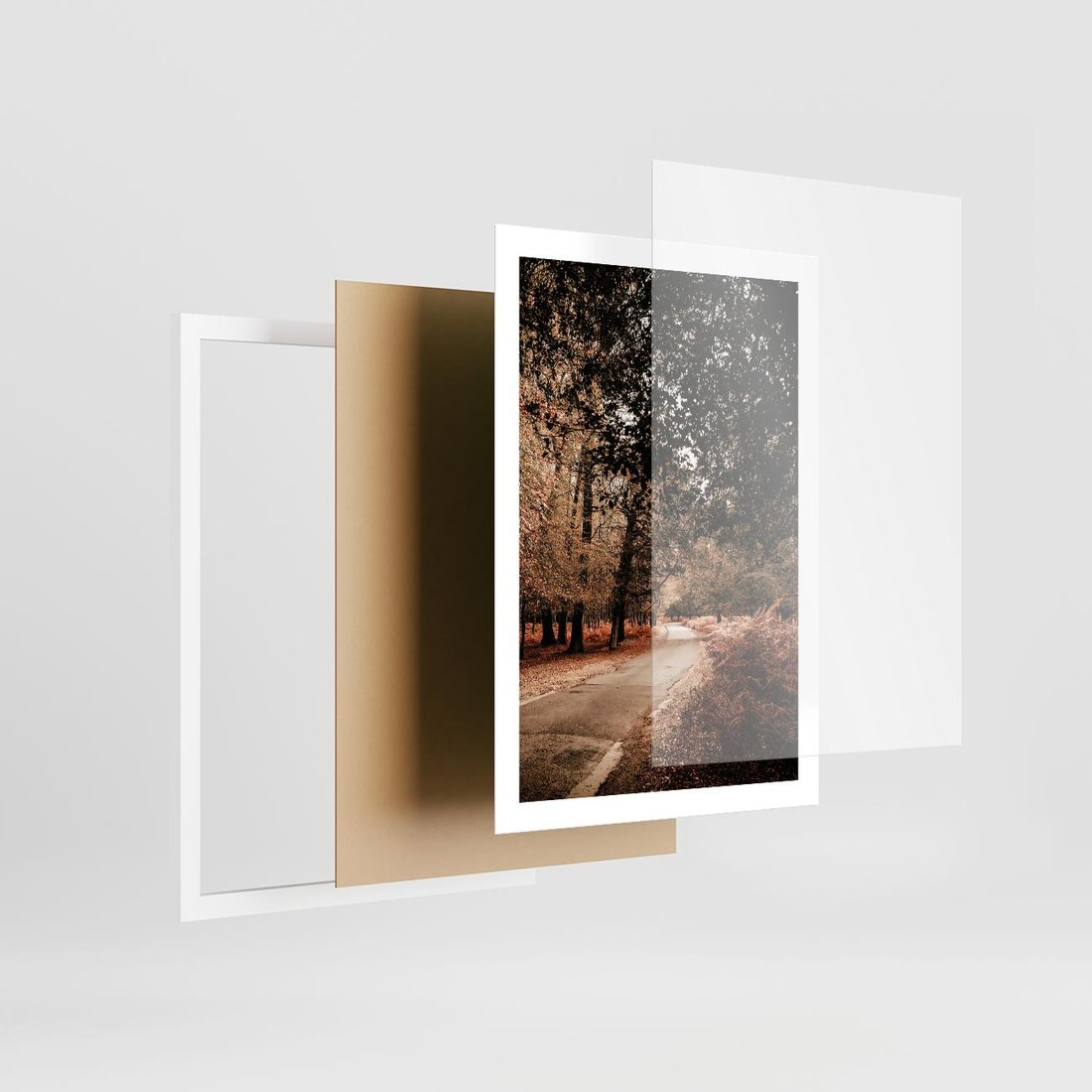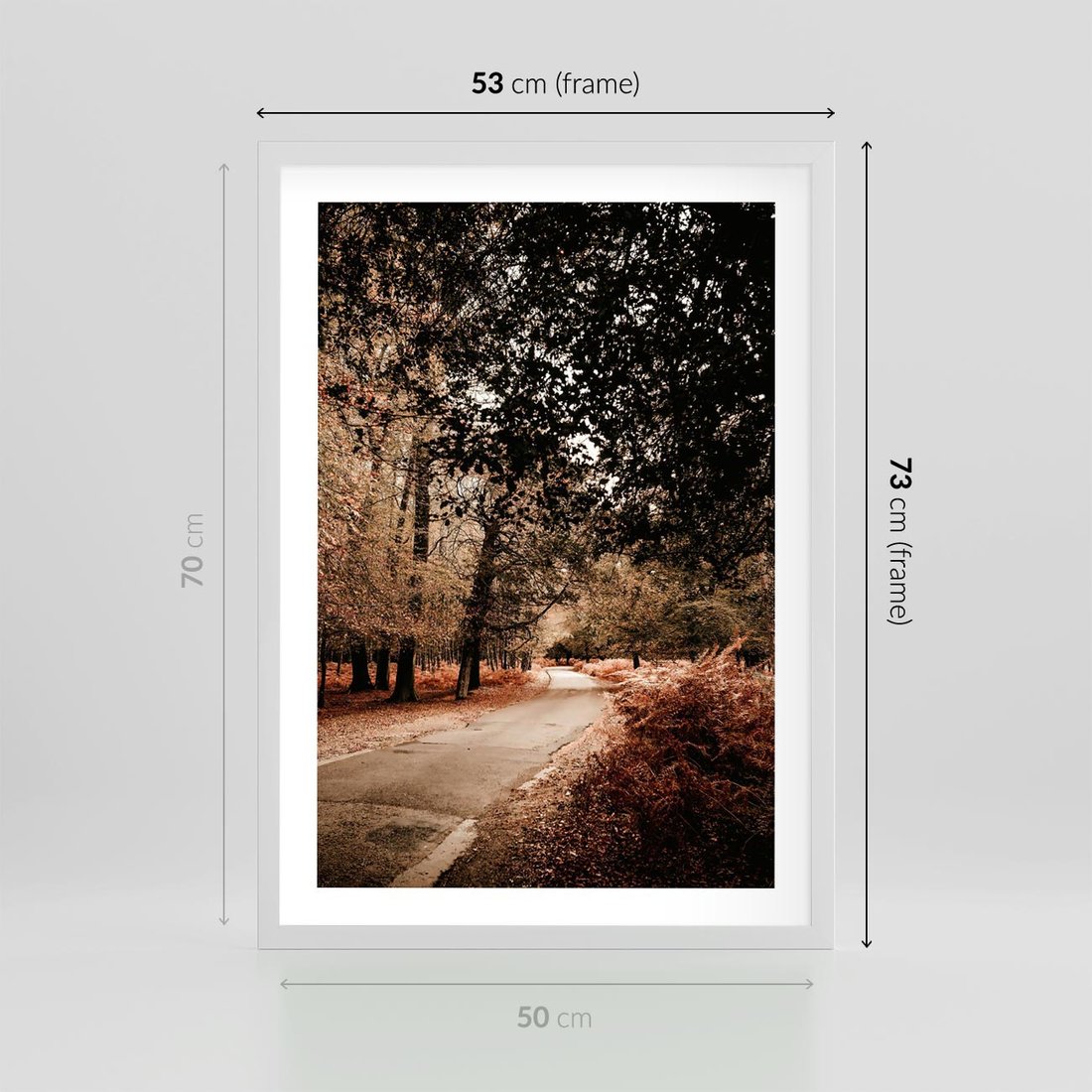 Plakat w ramie 50x70 - Magia Jesieni: Pejzaż Parku w Odcieniach Żółci - jesień, park - rama biała