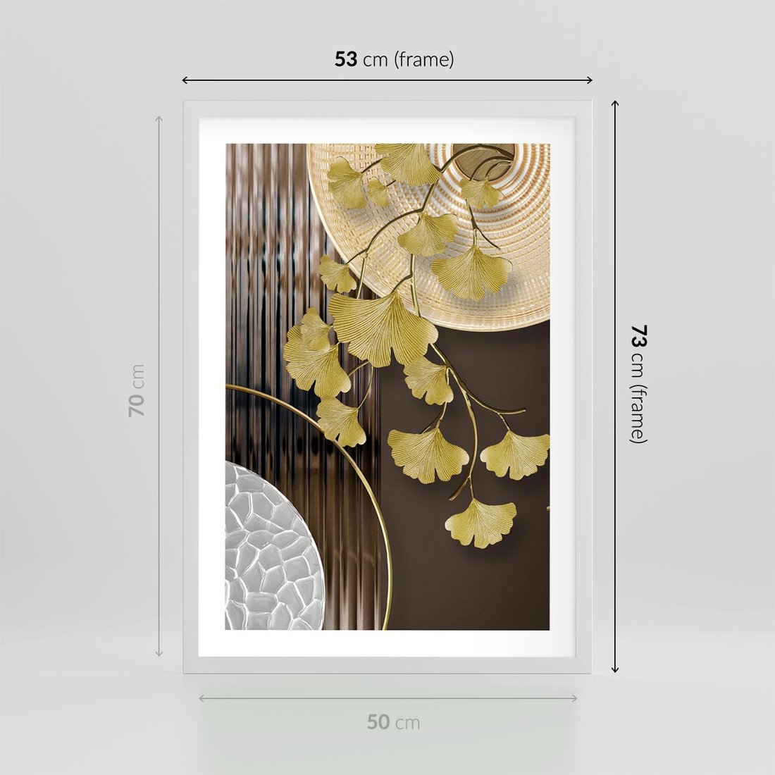 Plakat w ramie 50x70 - Magia Jesieni - złote, liście - rama biała