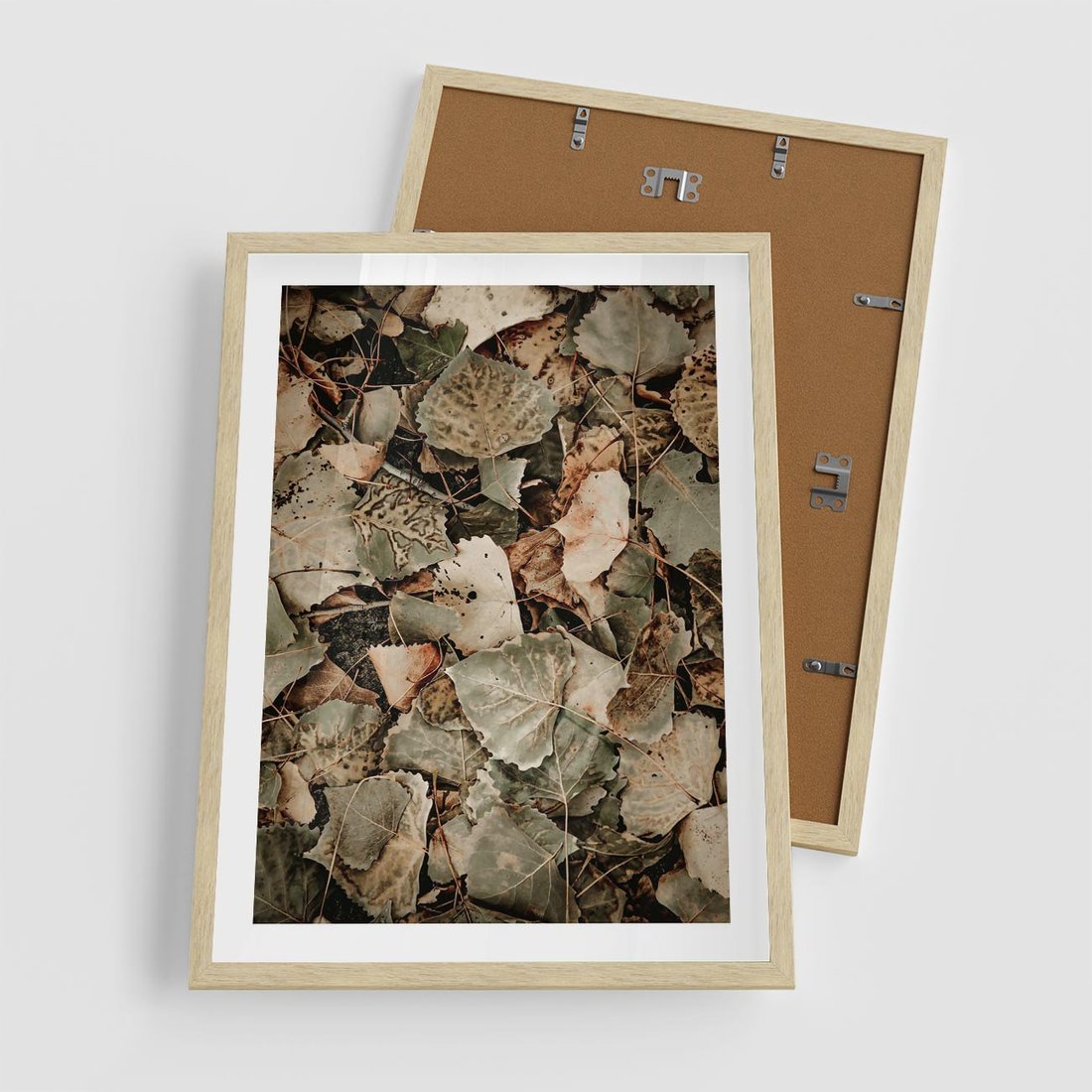 Plakat w ramie 50x70 - Magia Jesiennych Liści - liście, suche liście - rama drewno