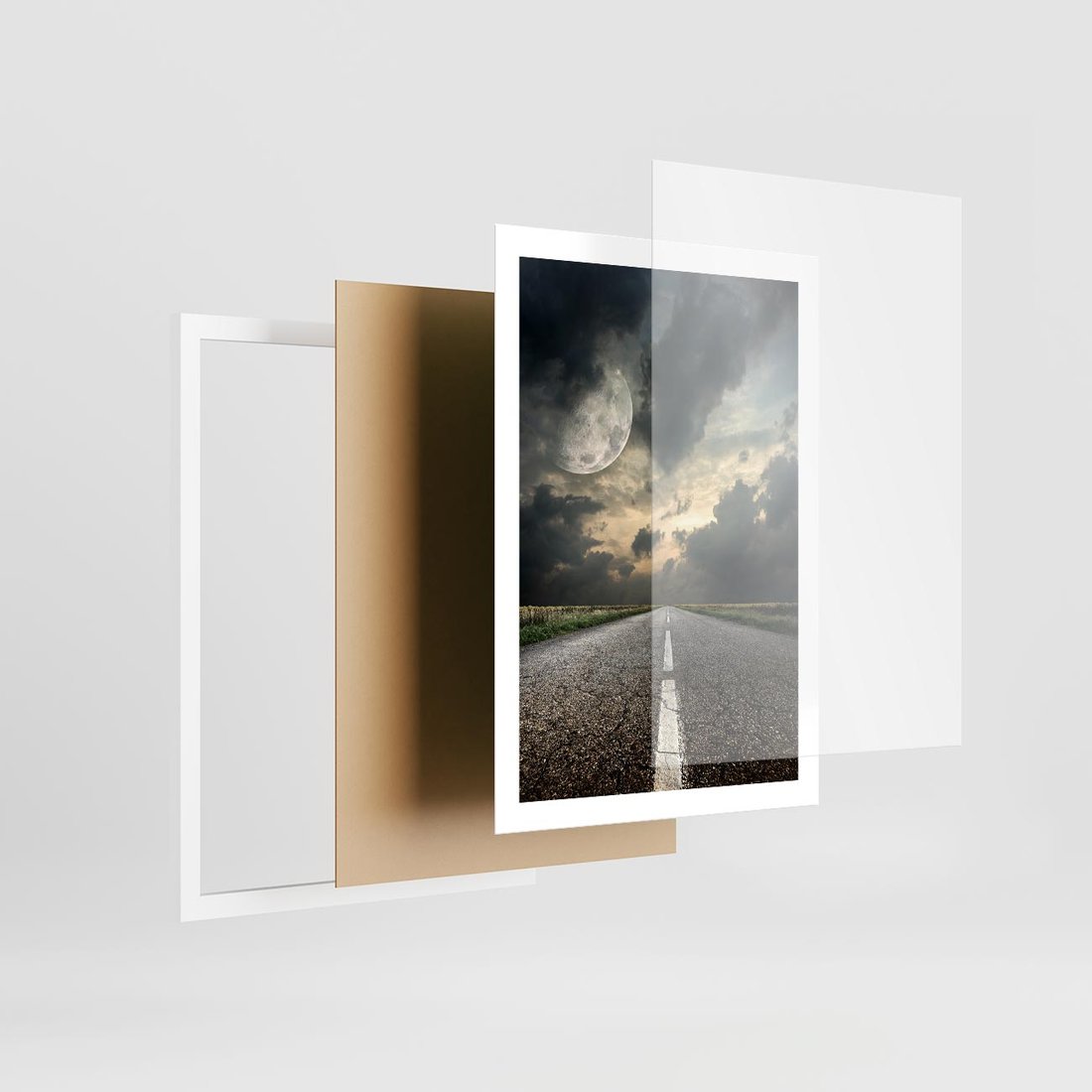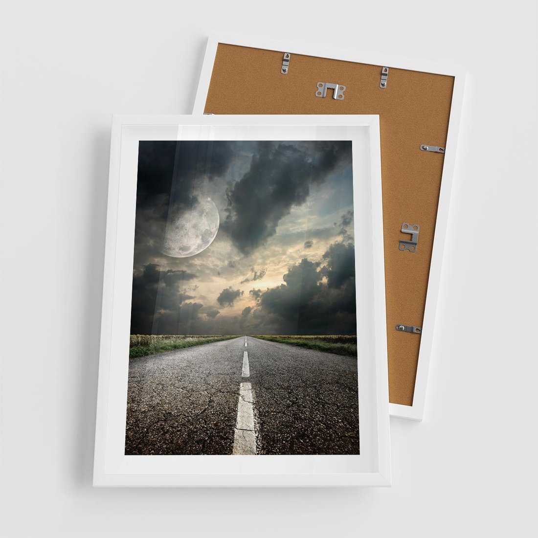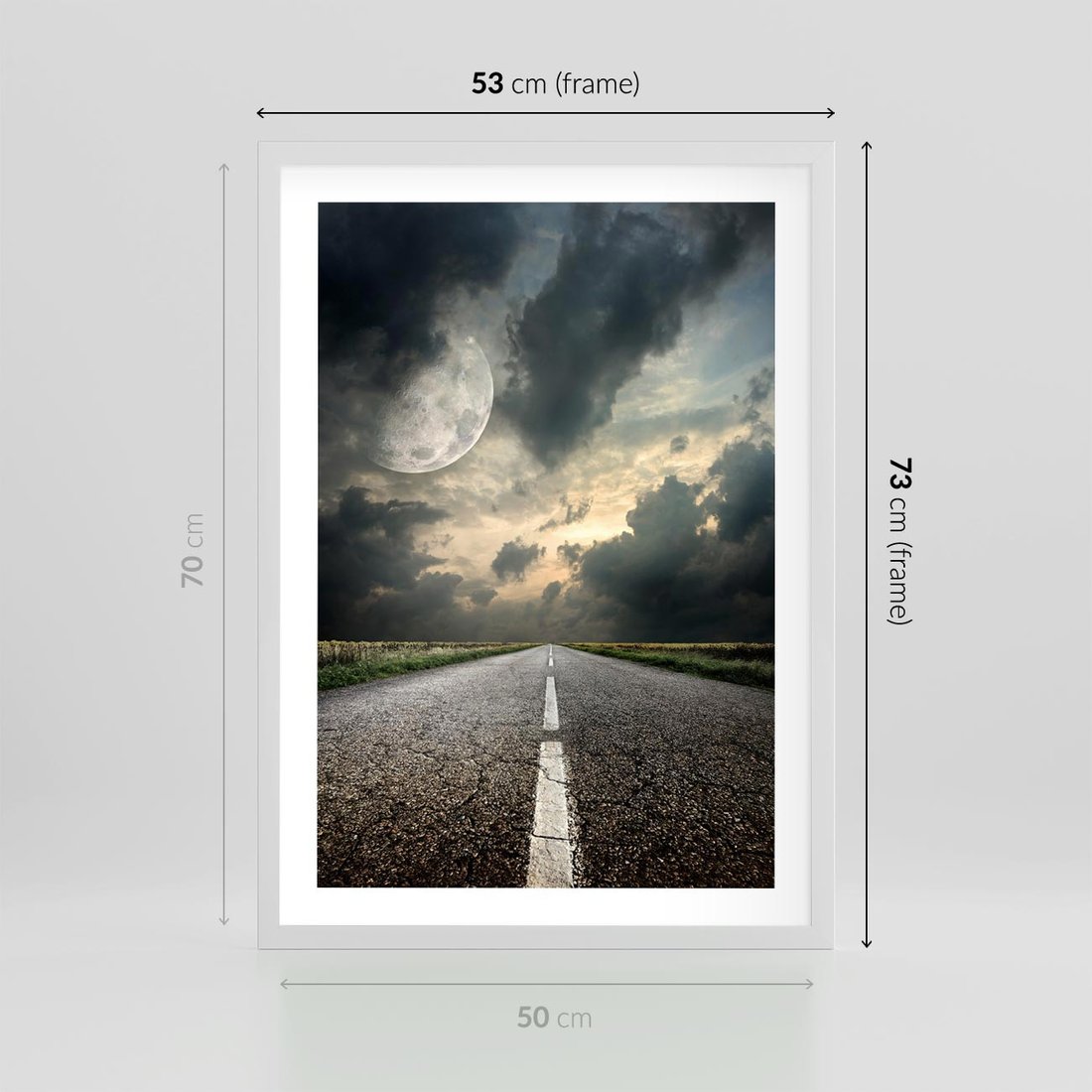 Plakat w ramie 50x70 - magia nocnej drogi - droga, księżyc - rama biała