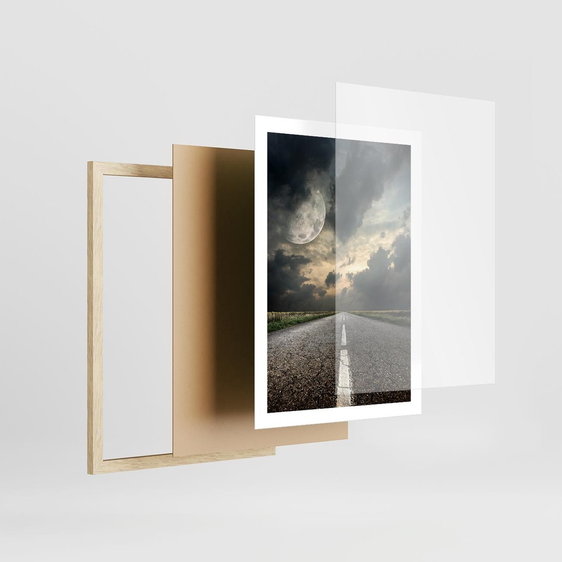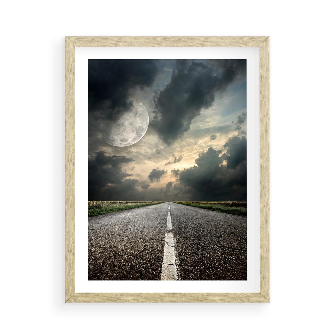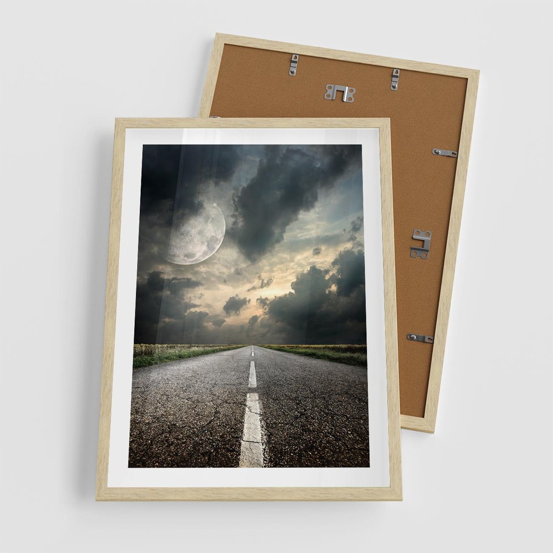 Plakat w ramie 50x70 - magia nocnej drogi - droga, księżyc - rama drewno