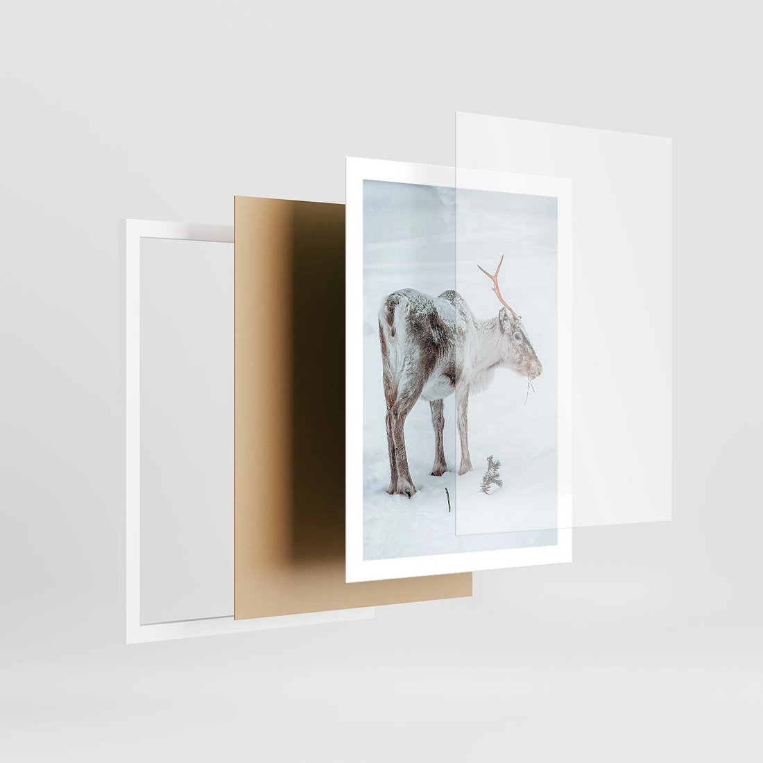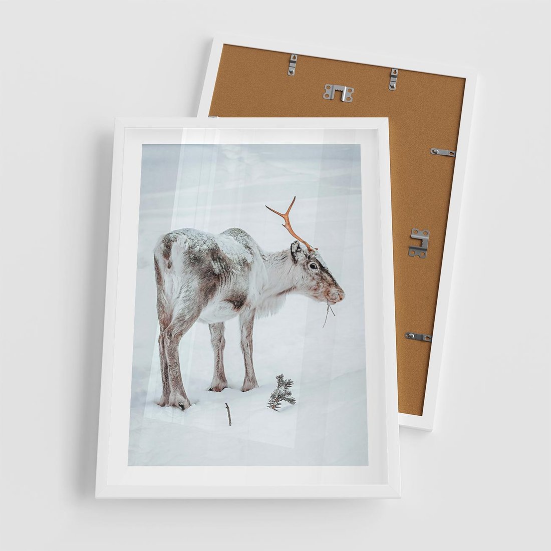 Plakat w ramie 50x70 - Magia Świąt - renifer na śniegu, śnieg - rama biała