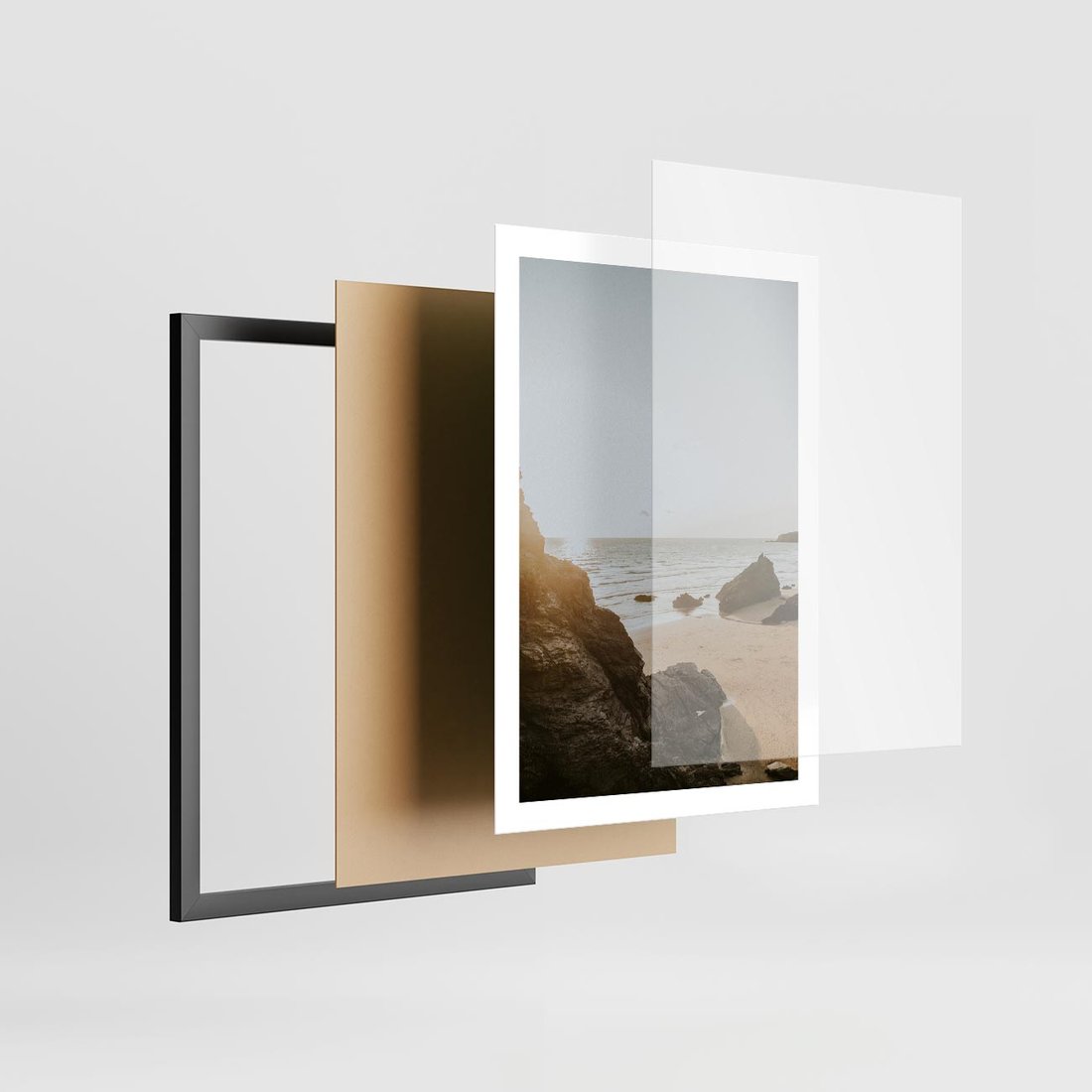 Plakat w ramie 50x70 - Magia Wieczornego Spokoju - plaża, zachód - rama czarna