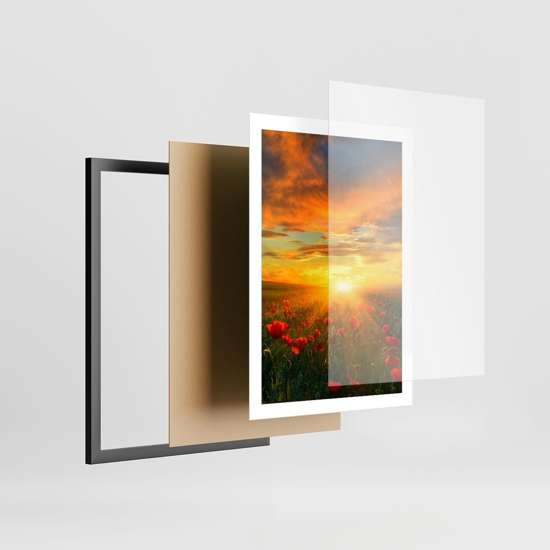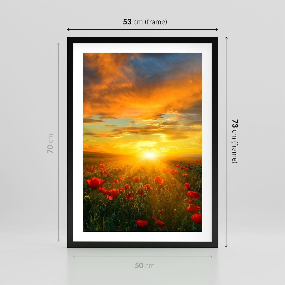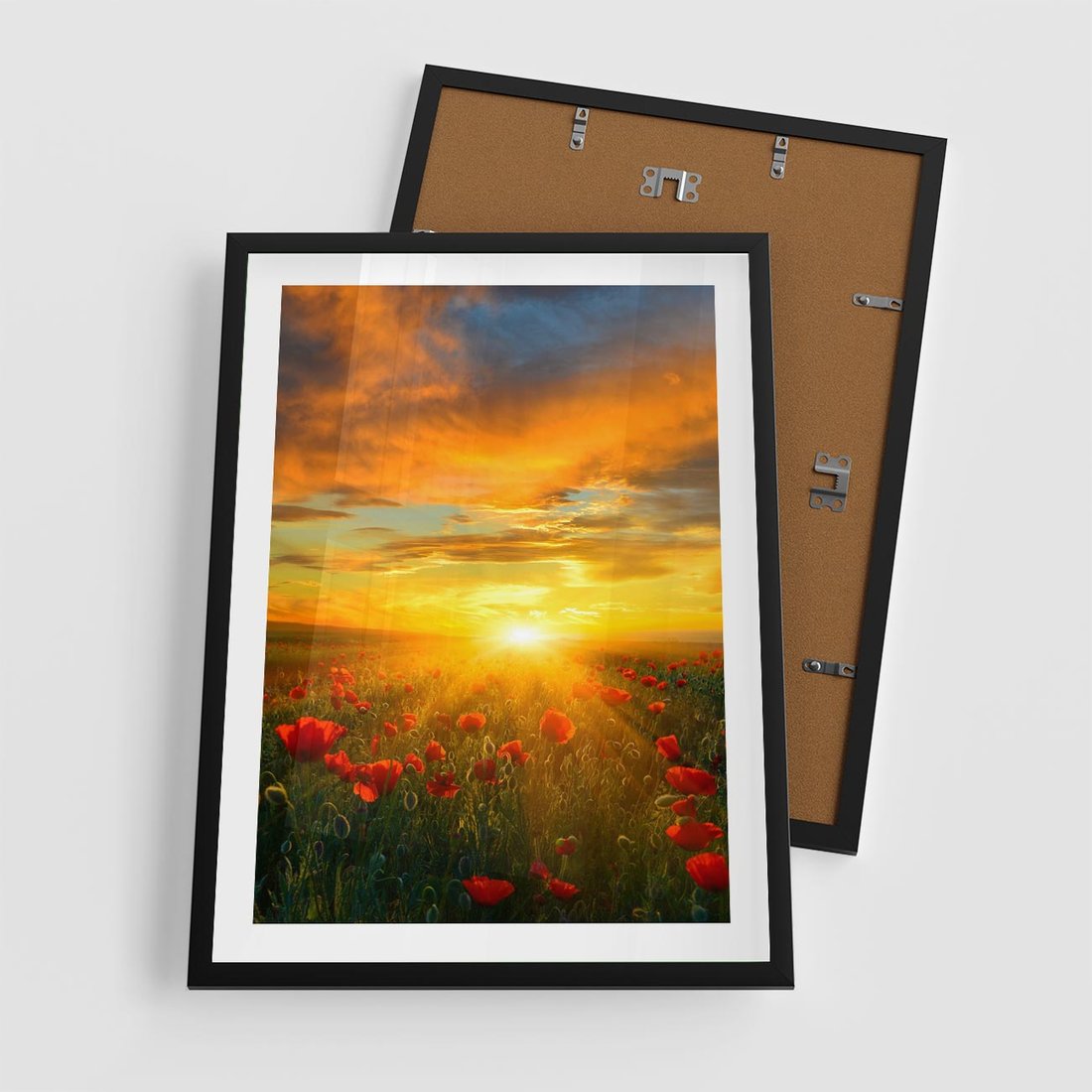 - Plakat w ramie 50x70 - Magia zachodu słońca na łące z makami
