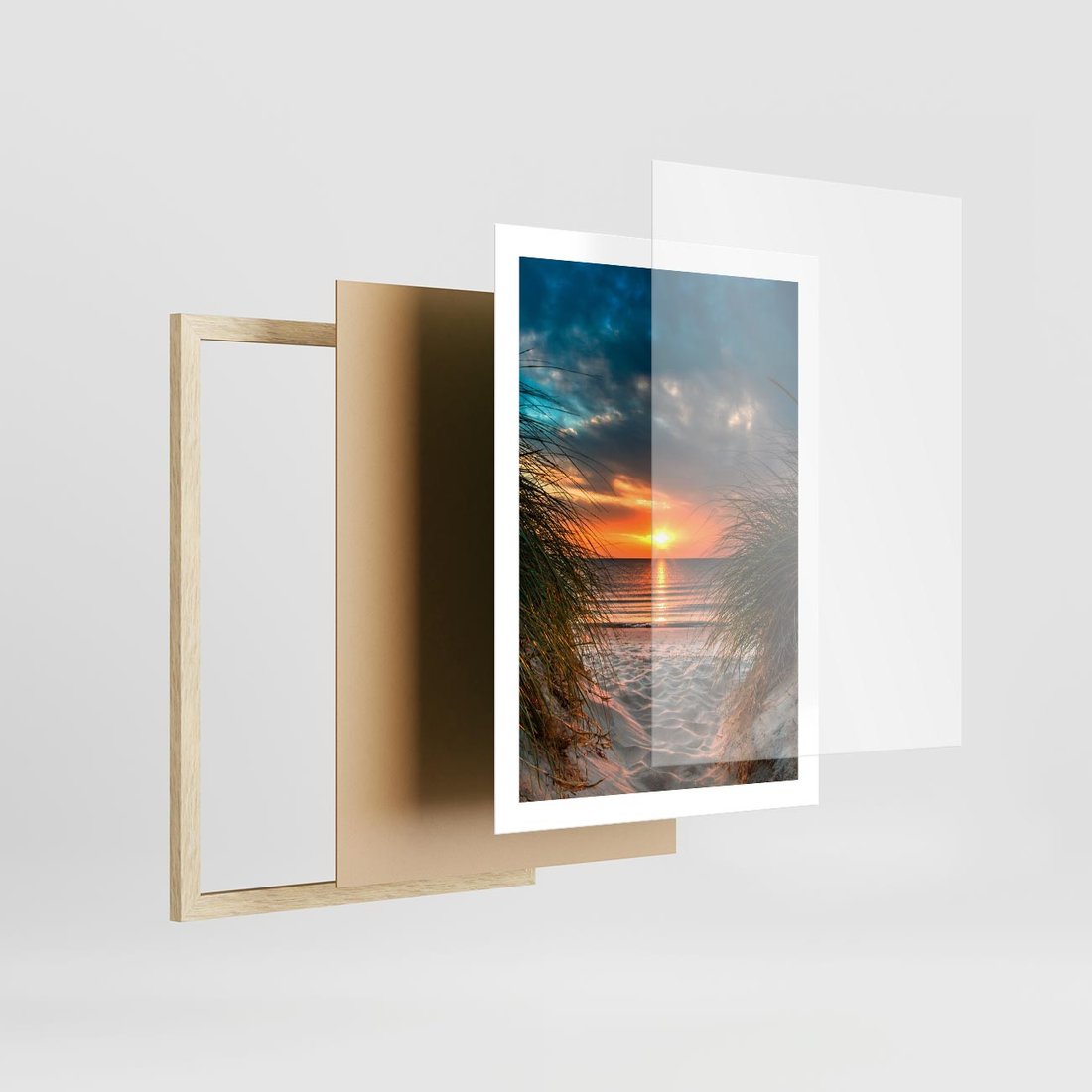 Plakat w ramie 50x70 - Magia zachodu słońca na plaży - zachód, słońca - rama drewno