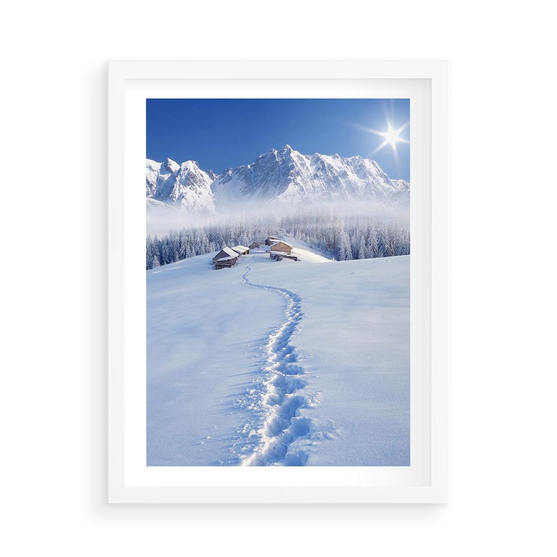Plakat w ramie 50x70 - Magia zimowych gór - zima, góry - rama biała