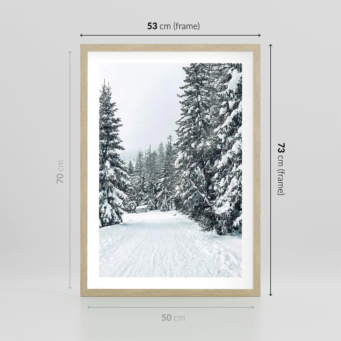 Plakat w ramie 50x70 - Magia Zimy na Obrazie - las, zima - rama drewno
