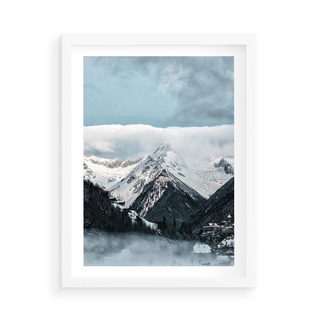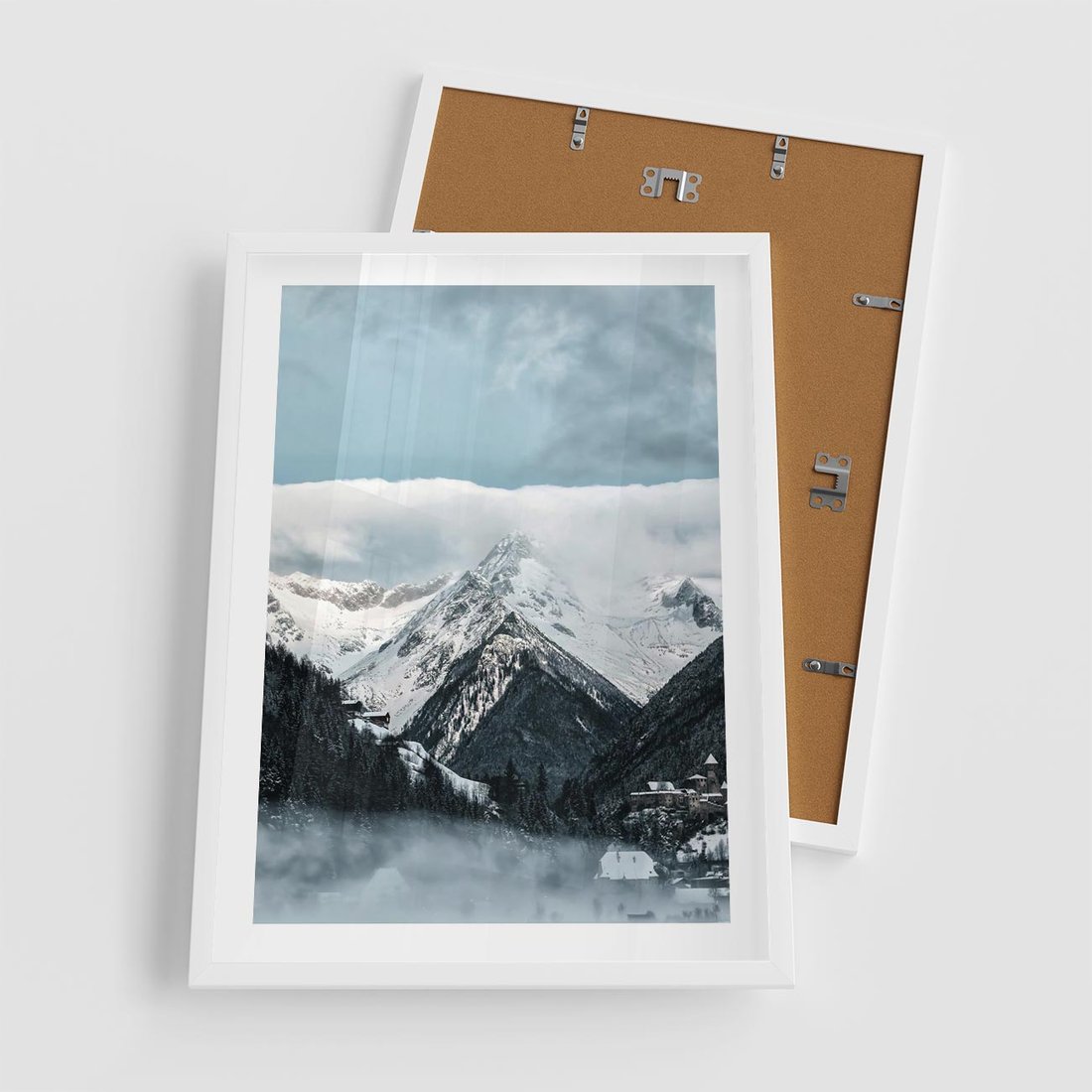 Plakat w ramie 50x70 - Magia Zimy w Górach - góry, śnieg - rama biała