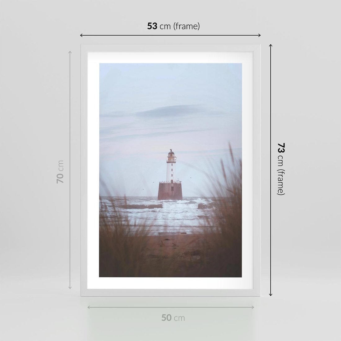 Plakat w ramie 50x70 - Magiczna Aura - latarnia, mgła - rama biała