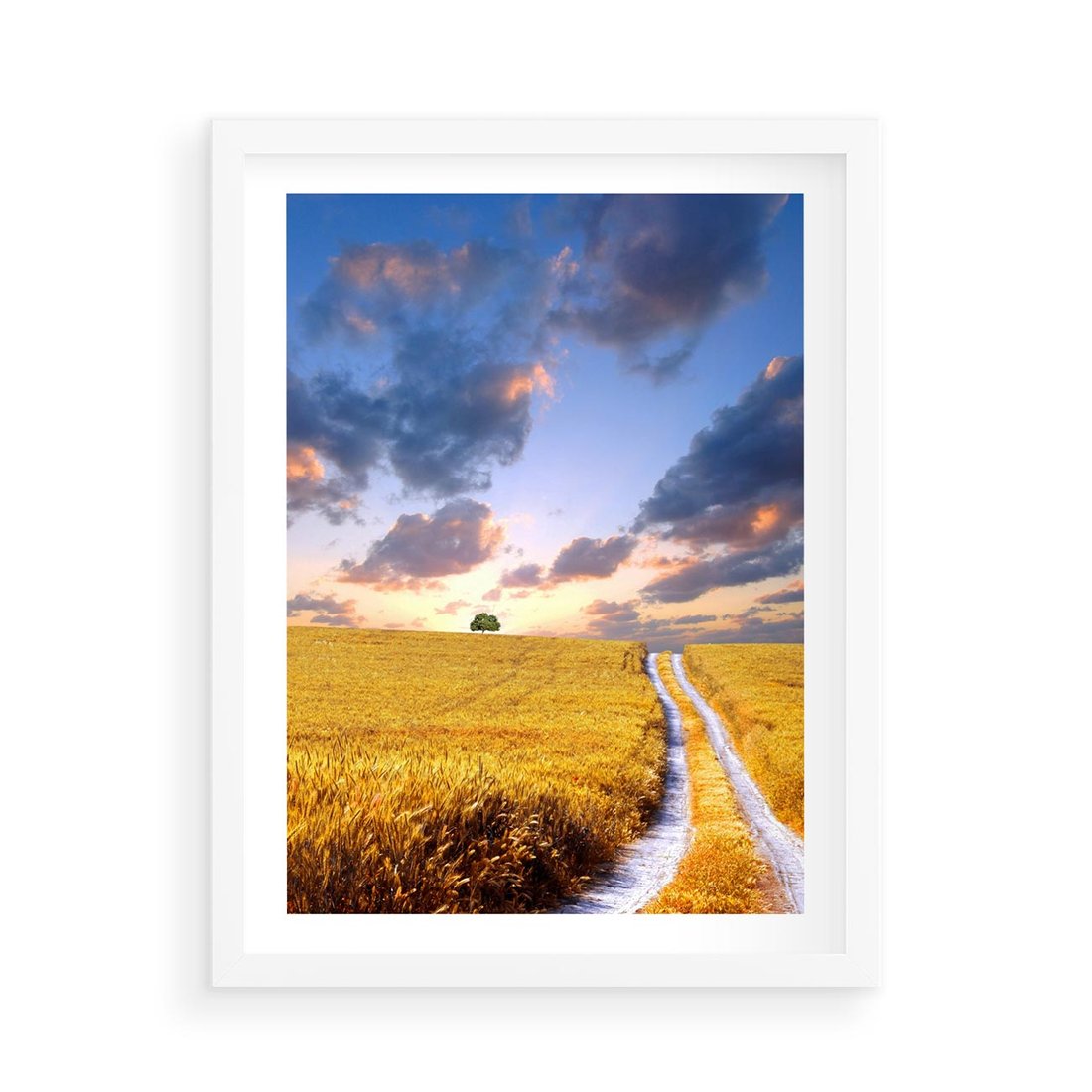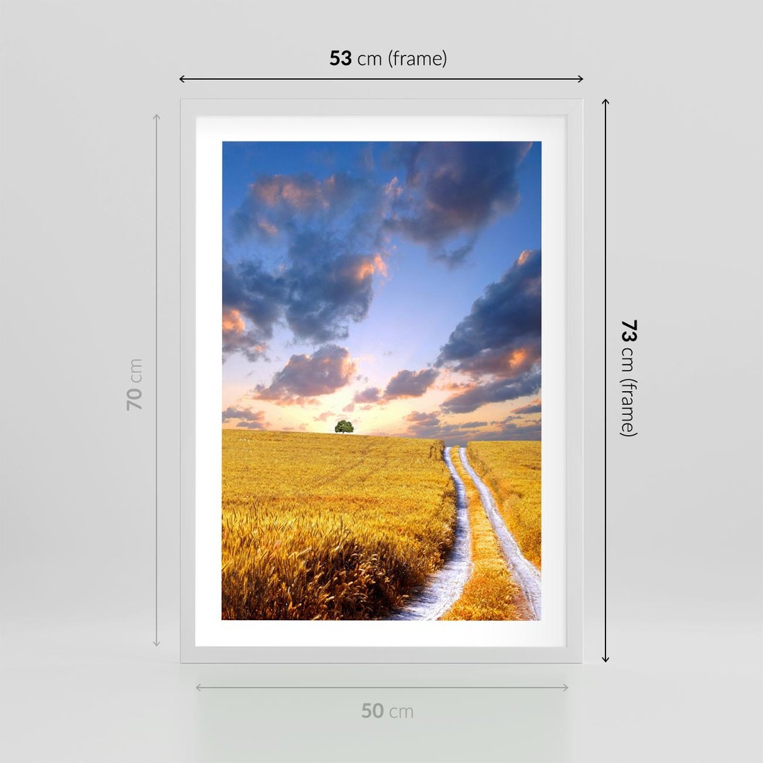 Plakat w ramie 50x70 - Magiczna droga w lesie - droga, ścieżka - rama biała