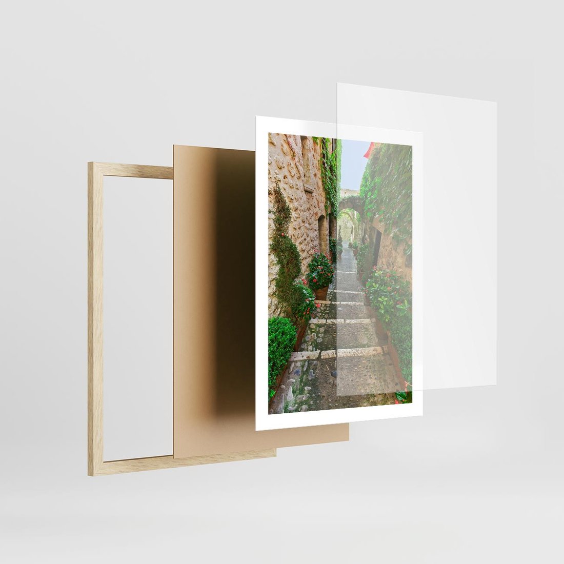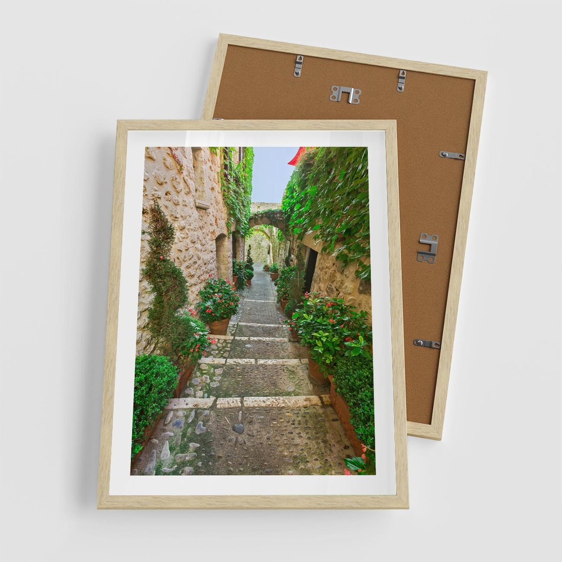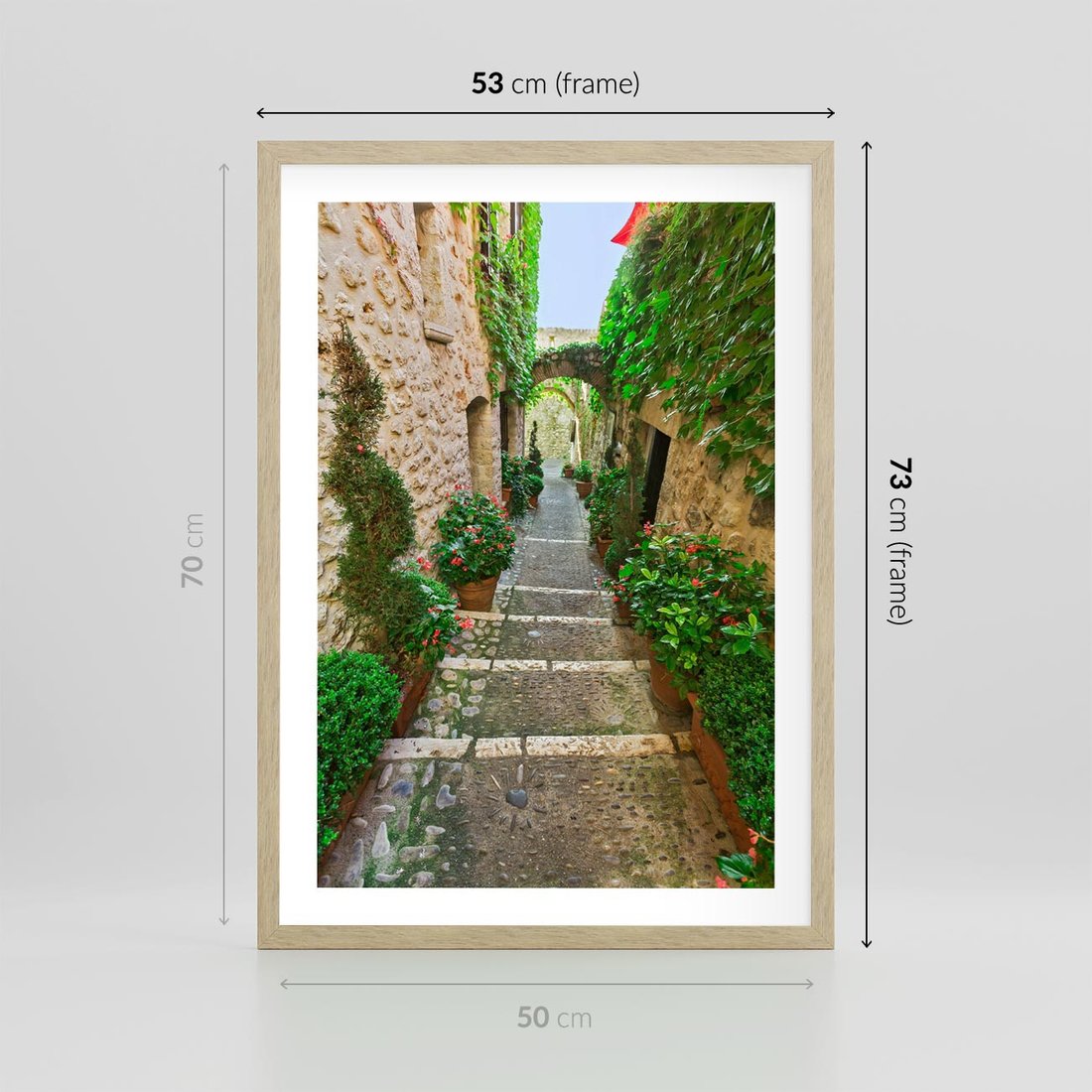 Plakat w ramie 50x70 - Magiczna podróż w głąb miasta - uliczka, perspektywa - rama drewno