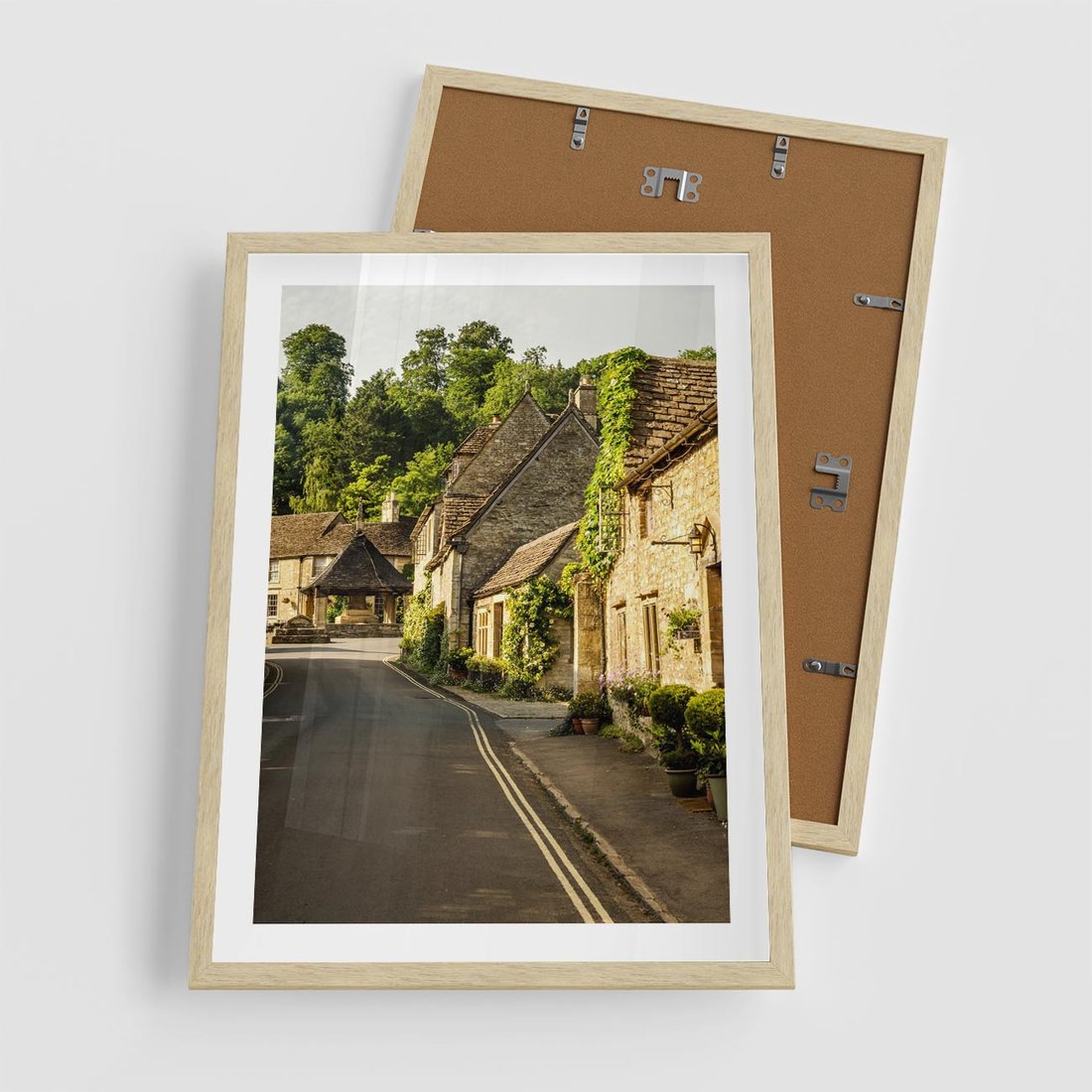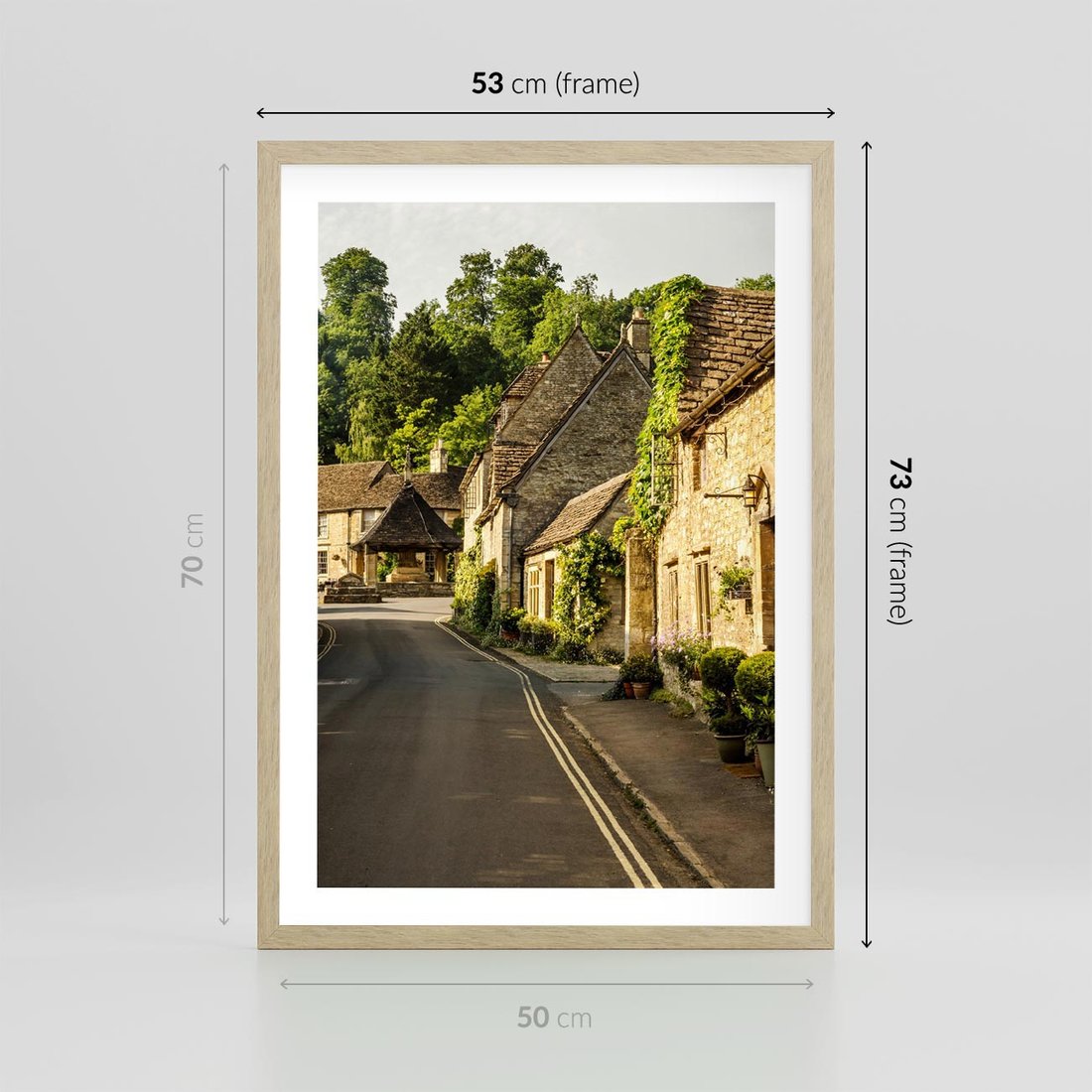 Plakat w ramie 50x70 - Magiczna podróż w głąb miasta - uliczka, perspektywa - rama drewno