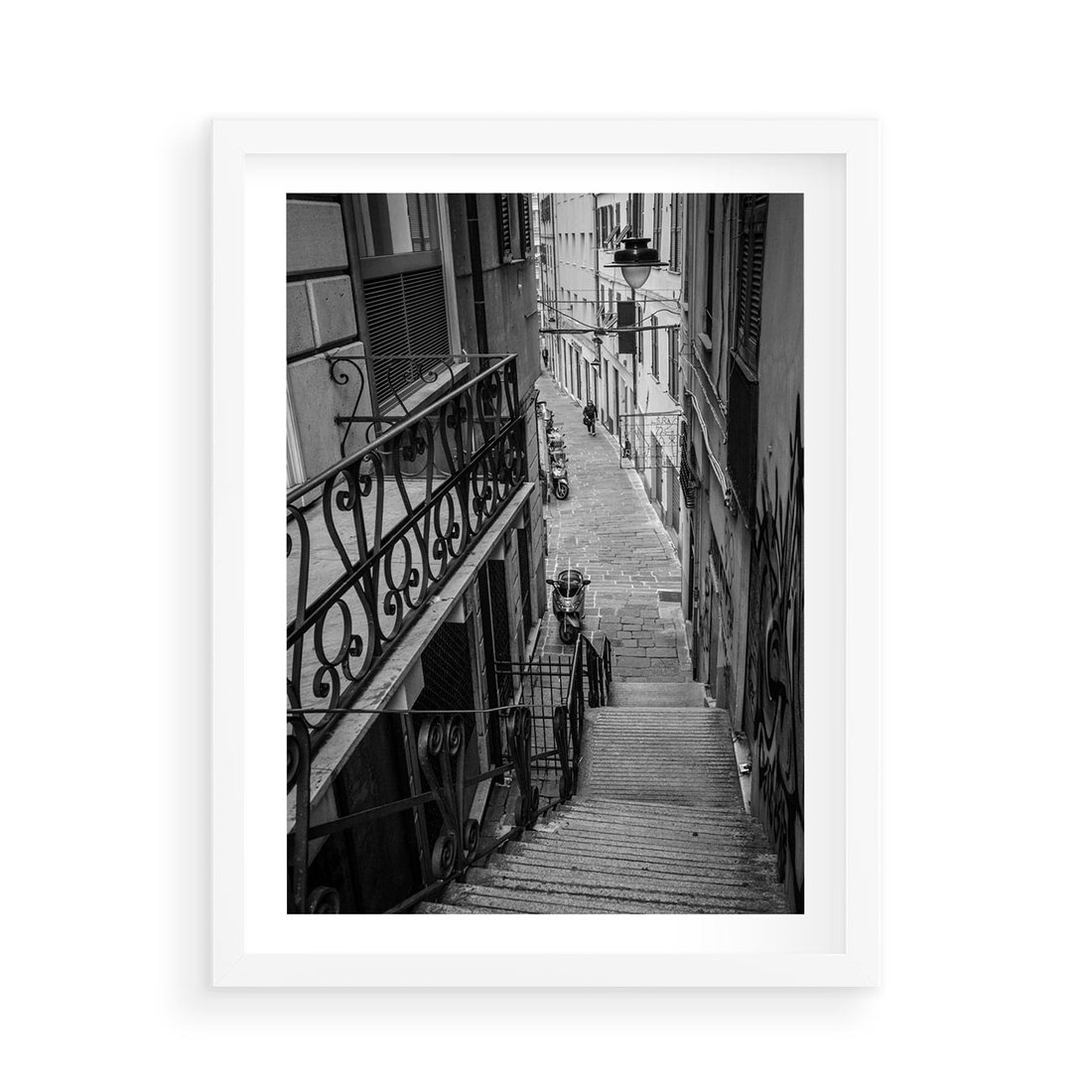 Plakat w ramie 50x70 - Magiczne spacery - uliczka, perspektywa - rama biała