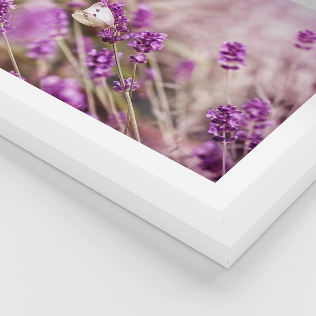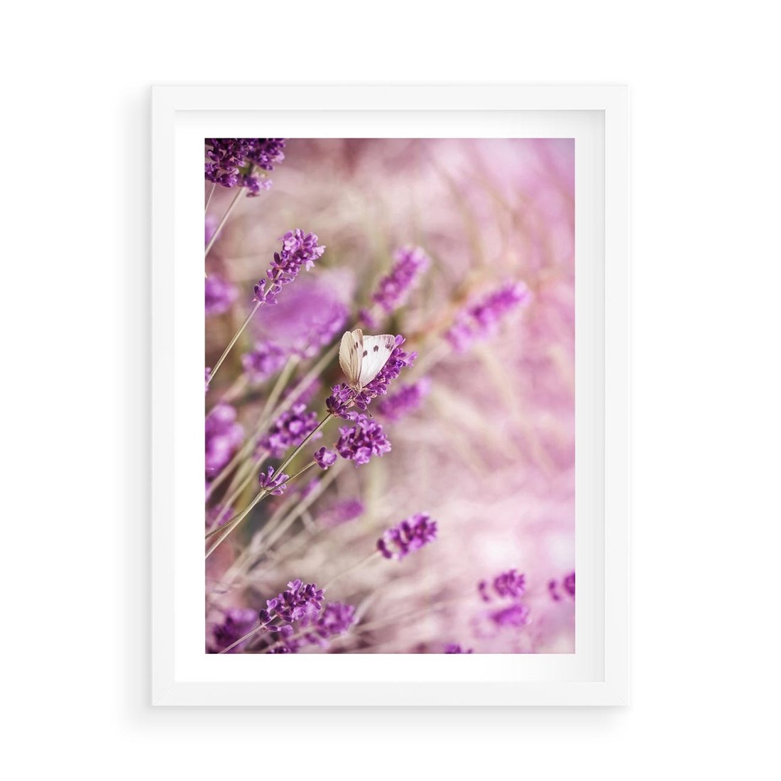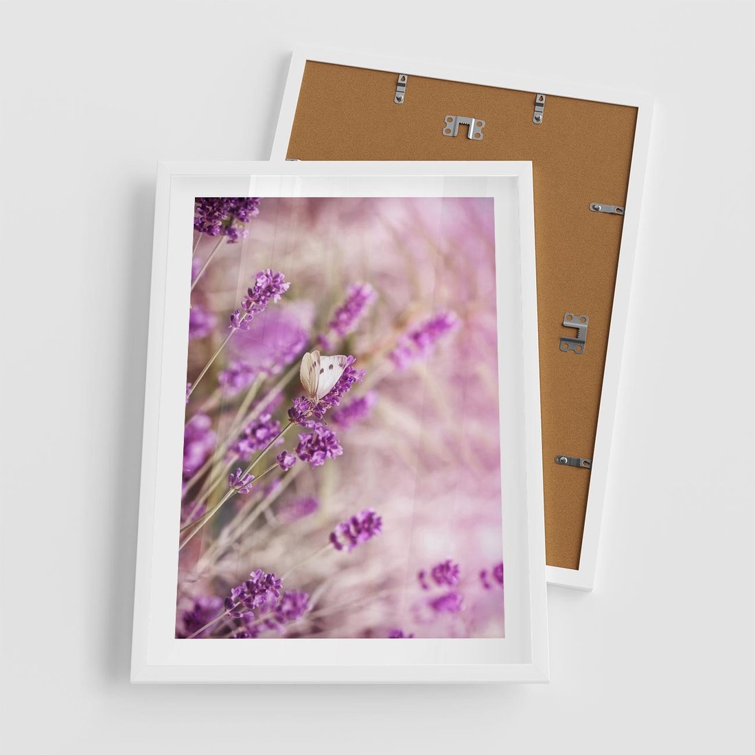 Plakat w ramie 50x70 - Majestat lawendy: fioletowe pola - lawenda, fiolet - rama biała