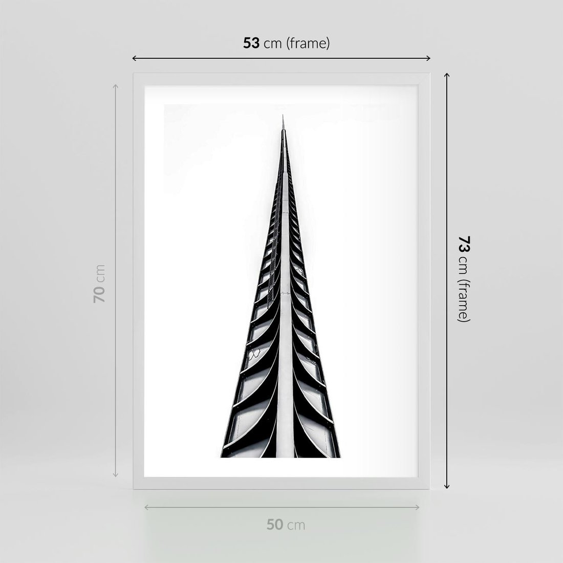 Plakat w ramie 50x70 - Majestatyczna Architektura - wysoki, strzelisty wieżowiec - rama biała