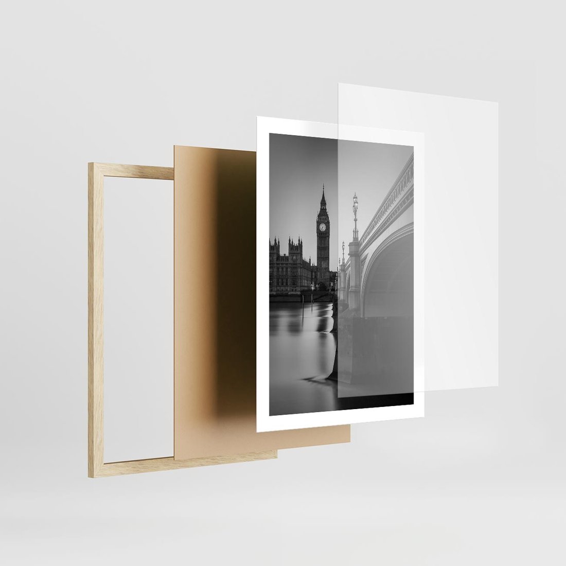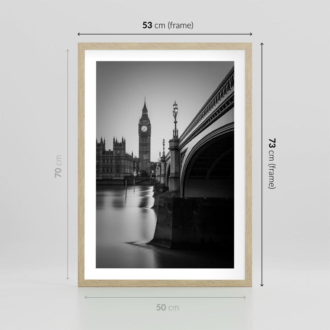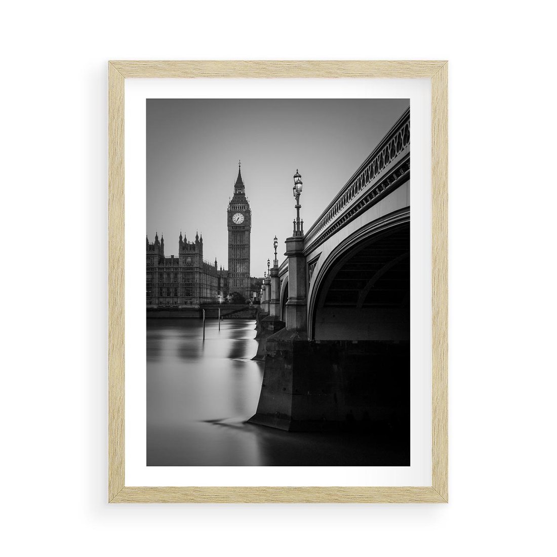 Plakat w ramie 50x70 - Majestatyczny Big Ben w Londynie - Londyn, most - rama drewno