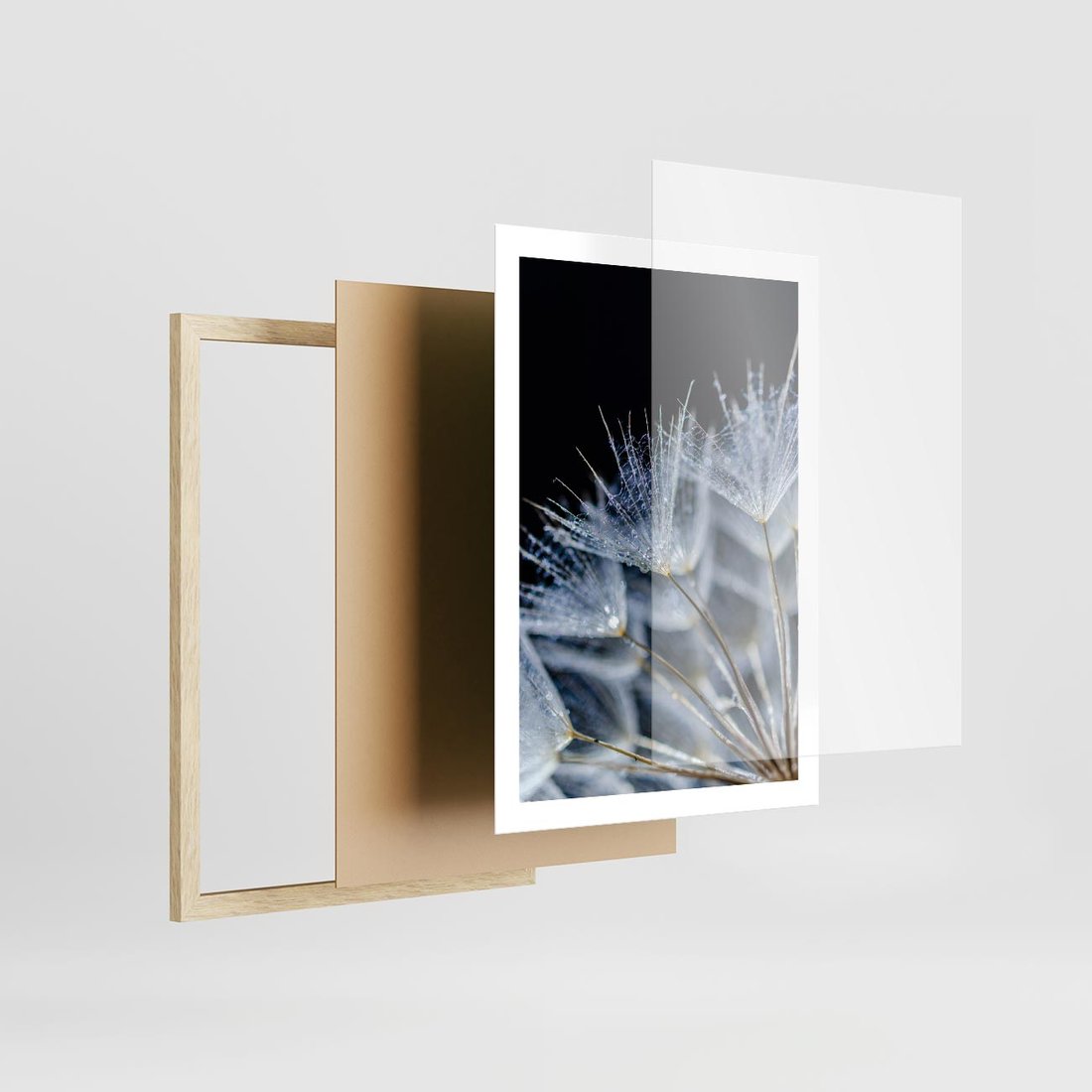 Plakat w ramie 50x70 - Makro piękno dmuchawców - makro, dmuchawce - rama drewno