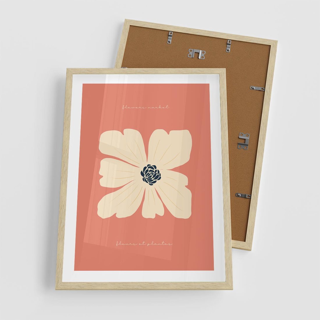 Plakat w ramie 50x70 - Malowane Kolorowe Echa - minimalistyczna grafika, biały kwiat na różowym tle - rama drewno