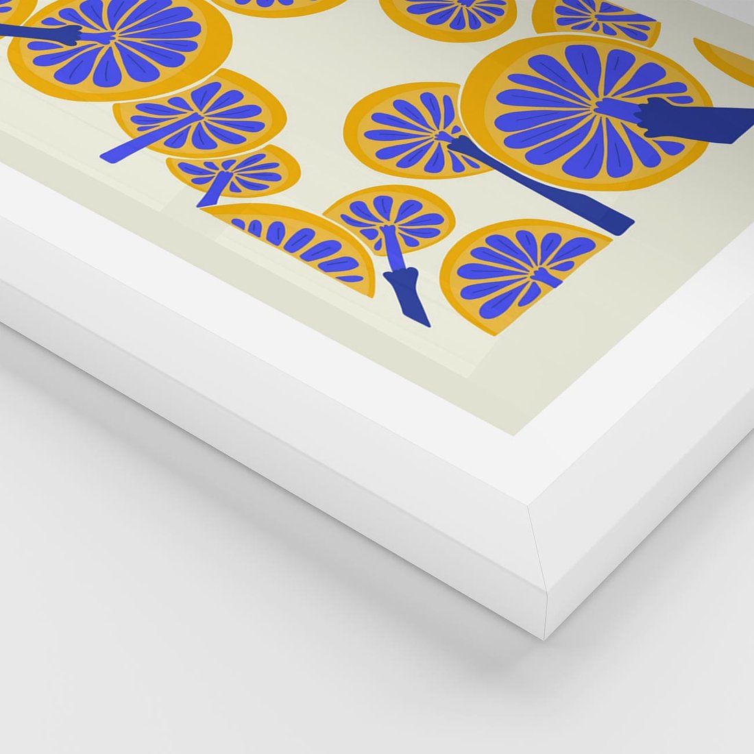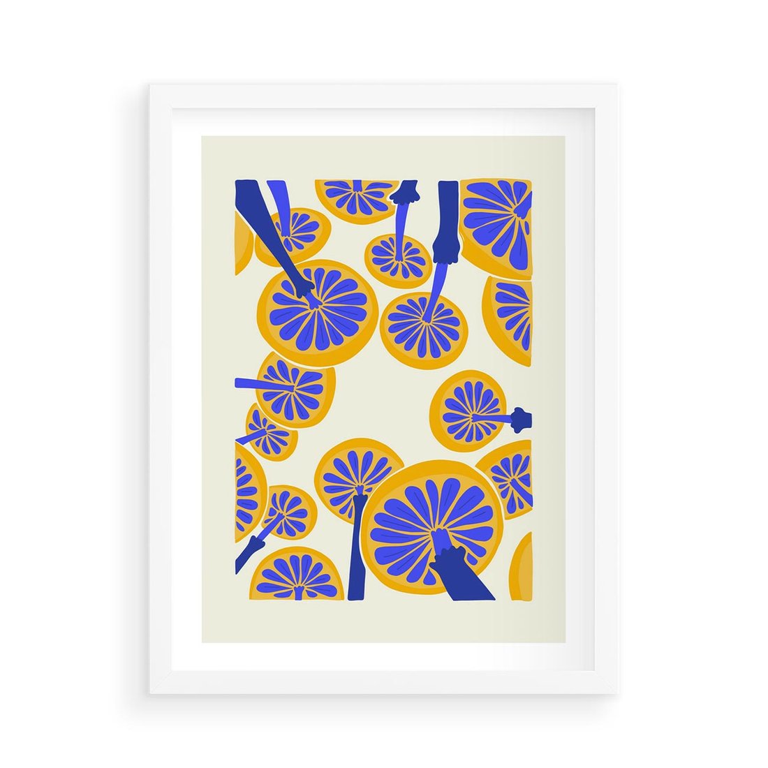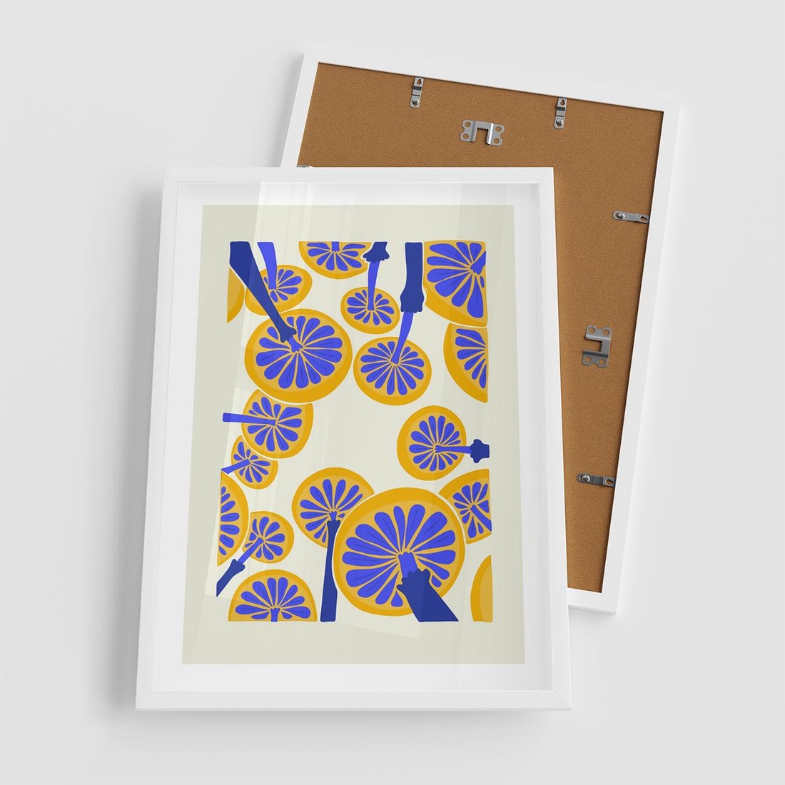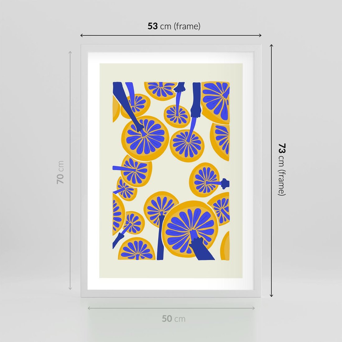 Plakat w ramie 50x70 - Malowane w słońcu - abstrakcyjna kompozycja, grzyby - rama biała