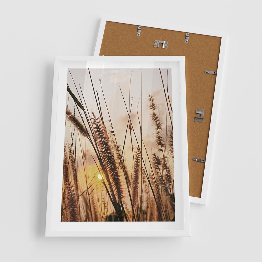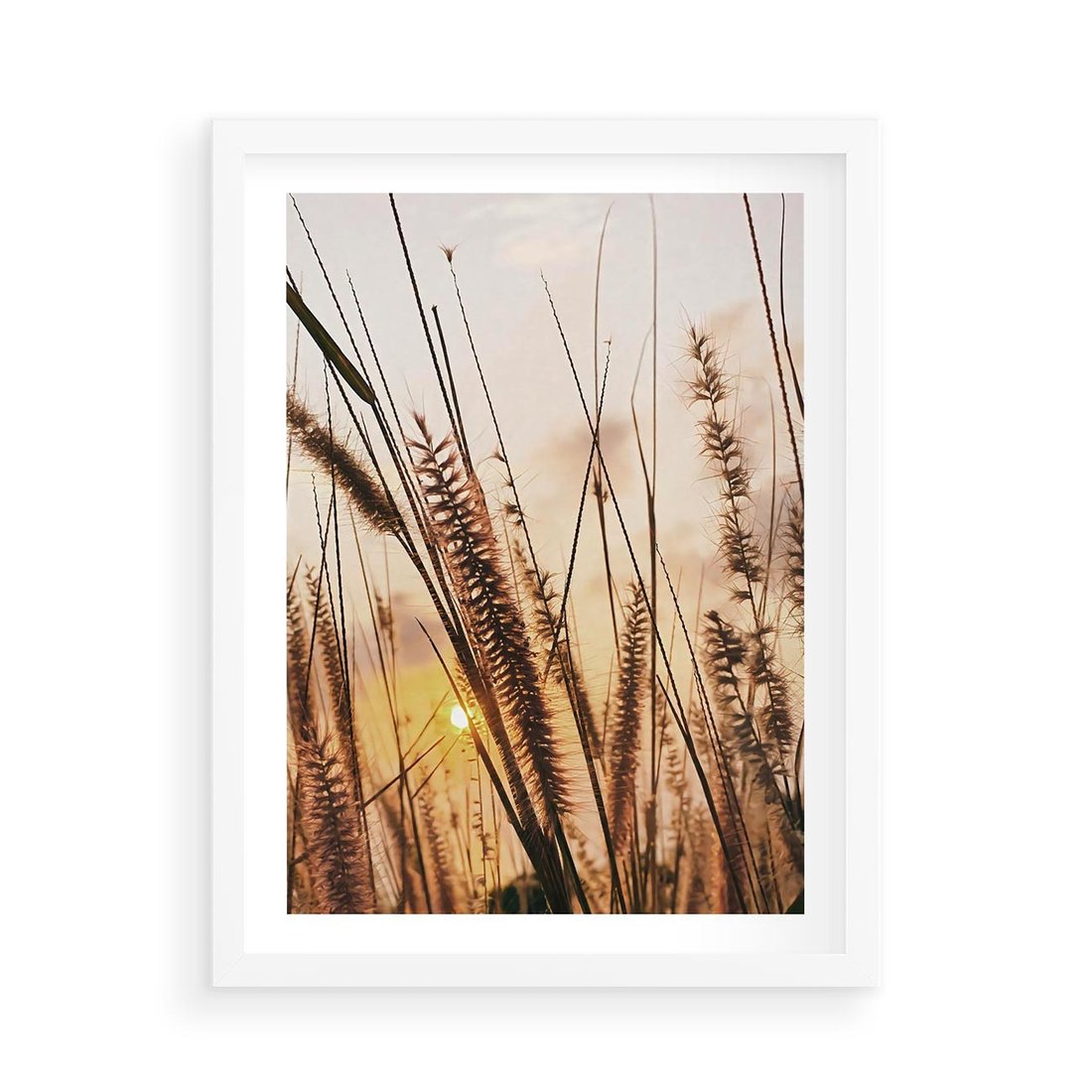 Plakat w ramie 50x70 - Malownicza Łąka z Trawam - trawy, łąka - rama biała