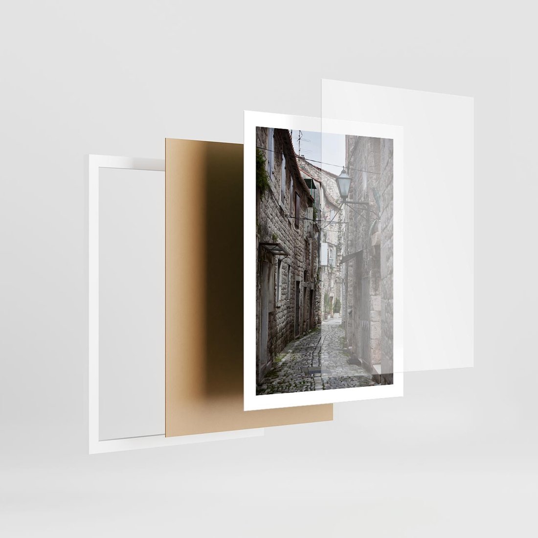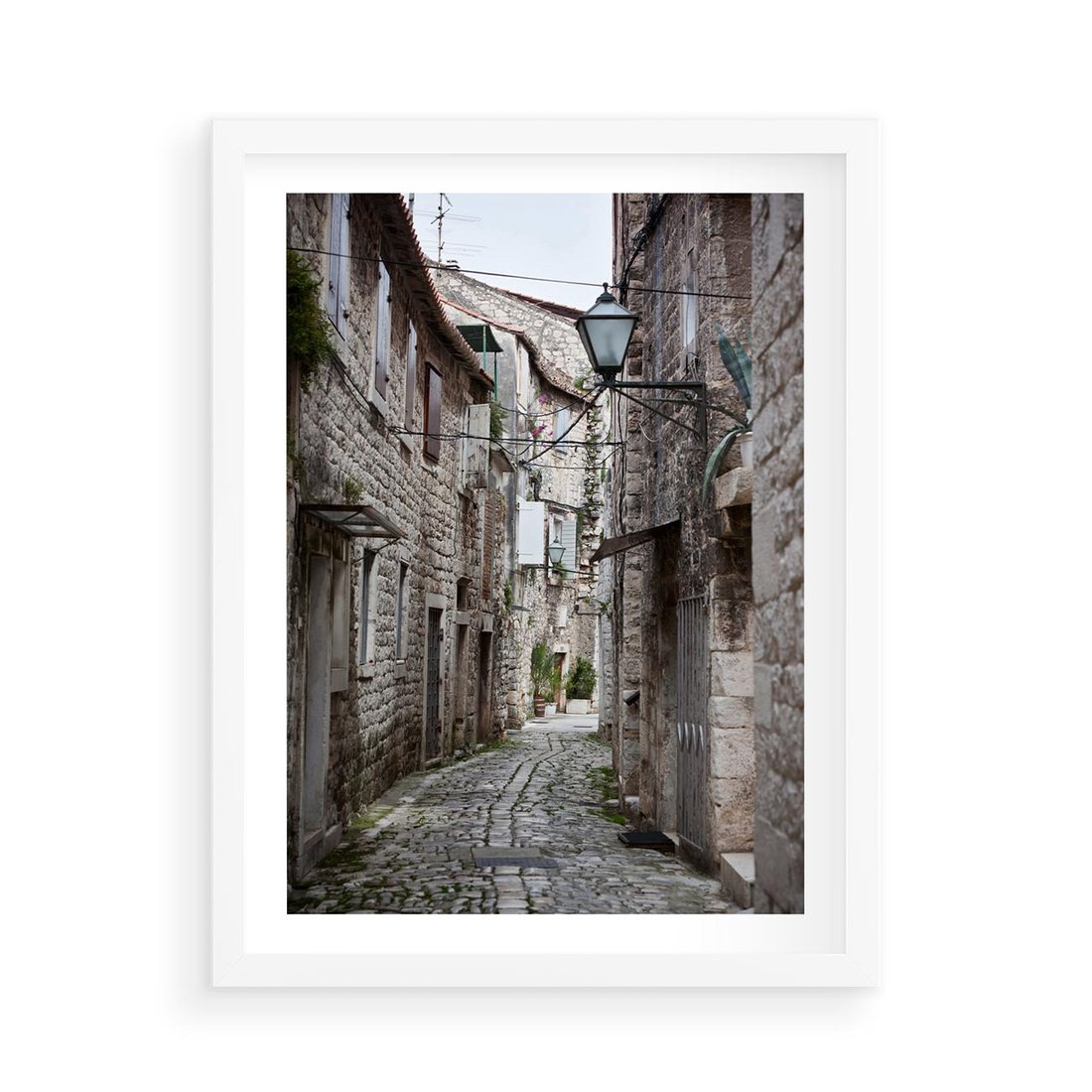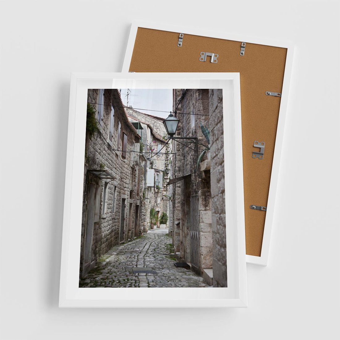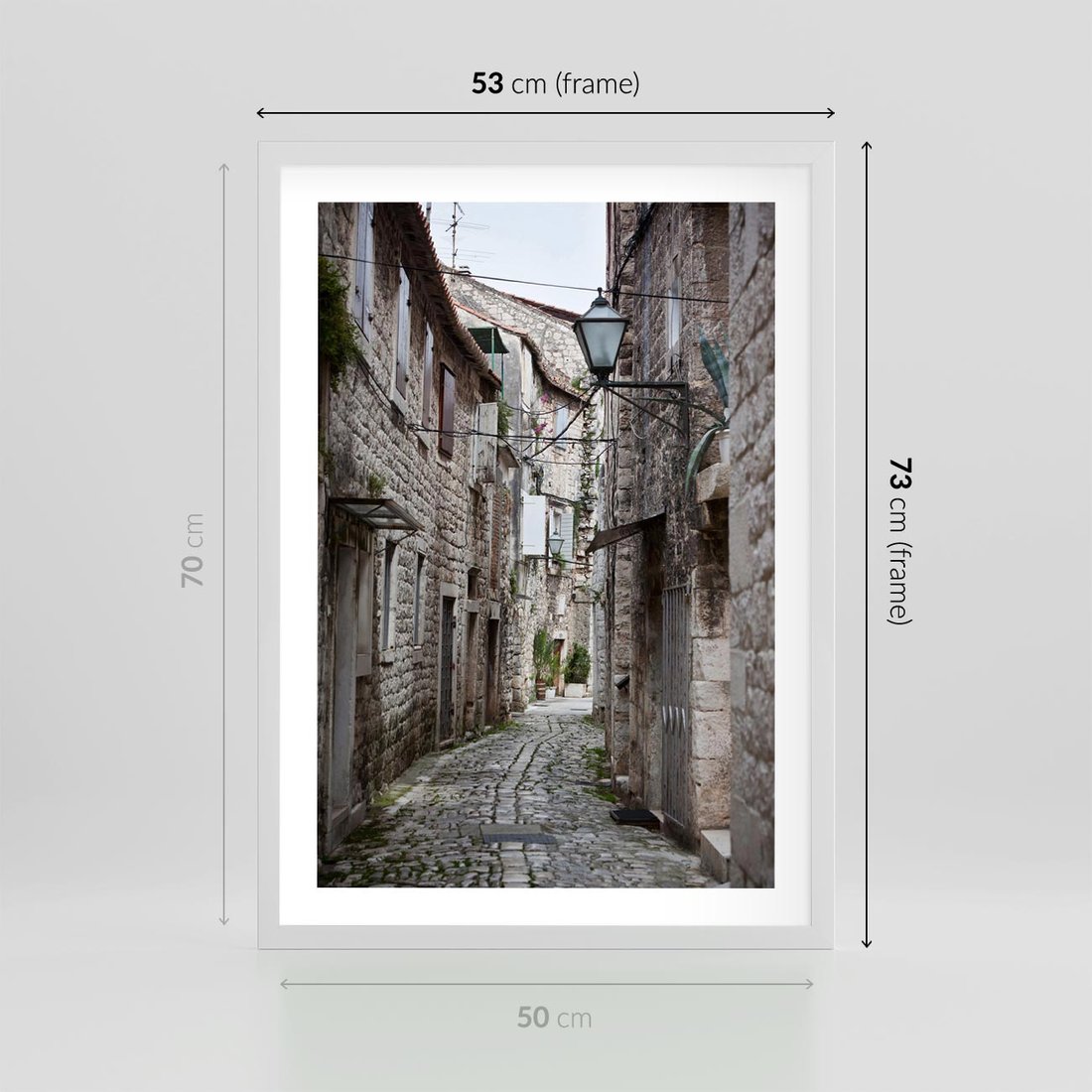 Plakat w ramie 50x70 - Malownicza uliczka we Włoszech - uliczka, Włoch - rama biała
