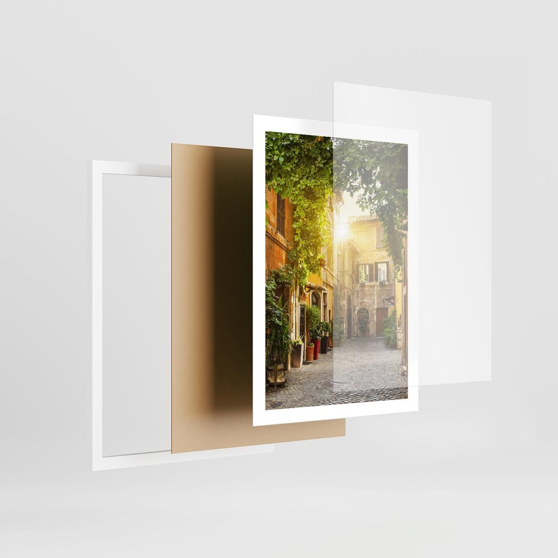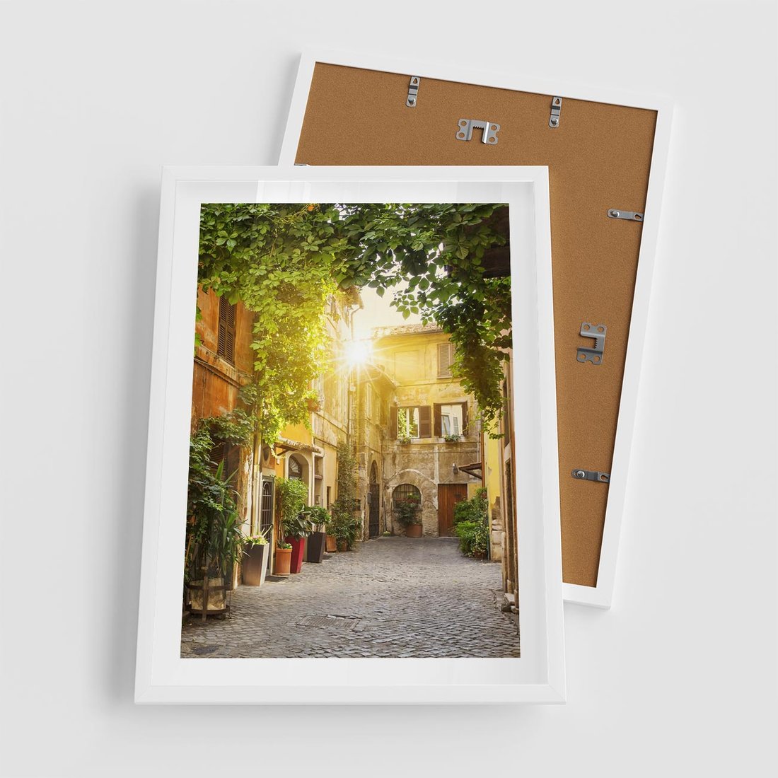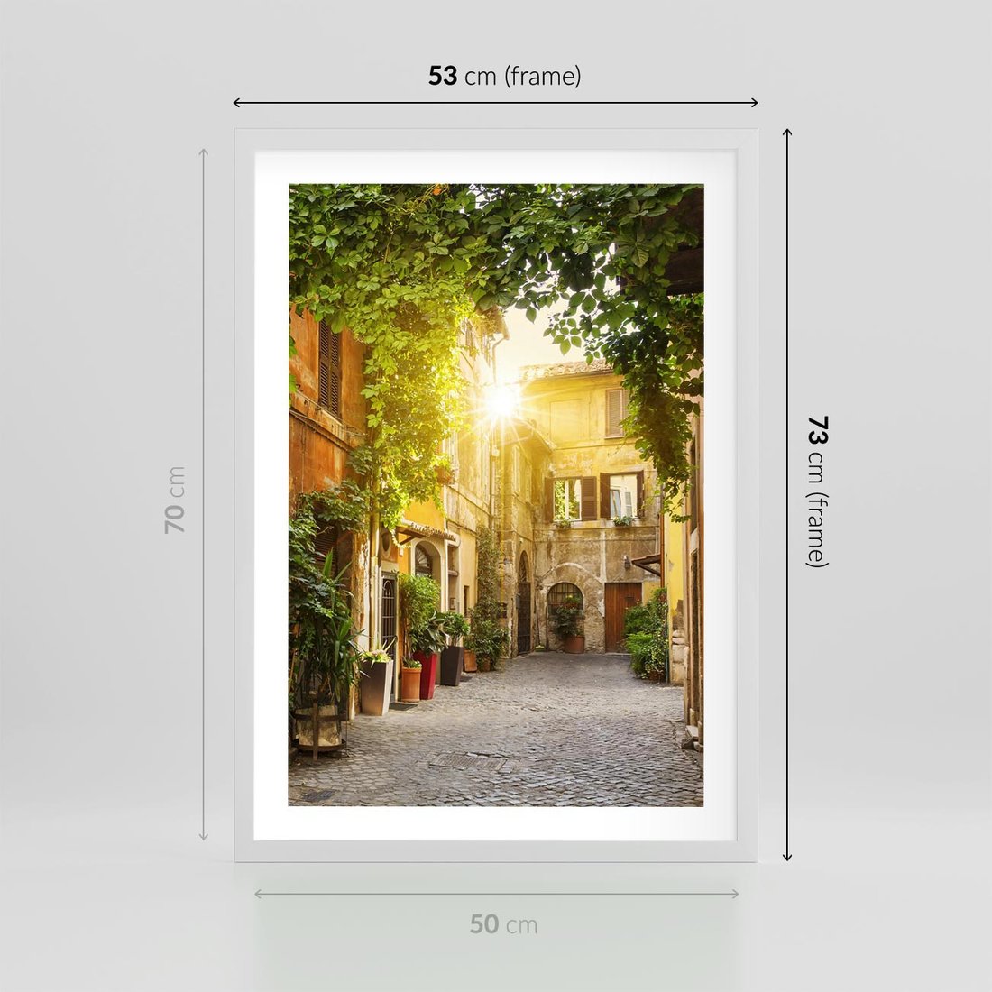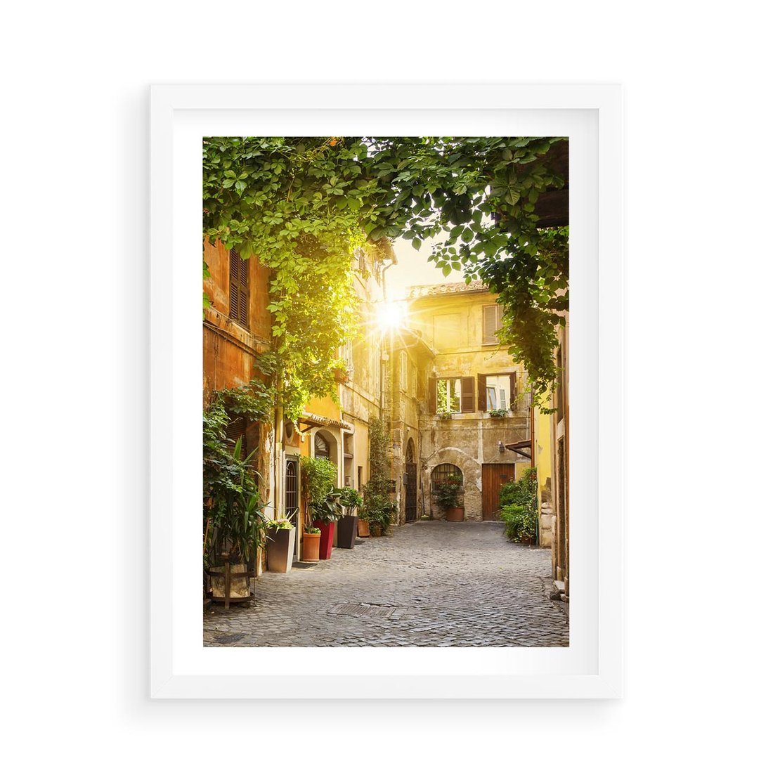 Plakat w ramie 50x70 - Malownicza Wędrówka - uliczka, perspektywa - rama biała