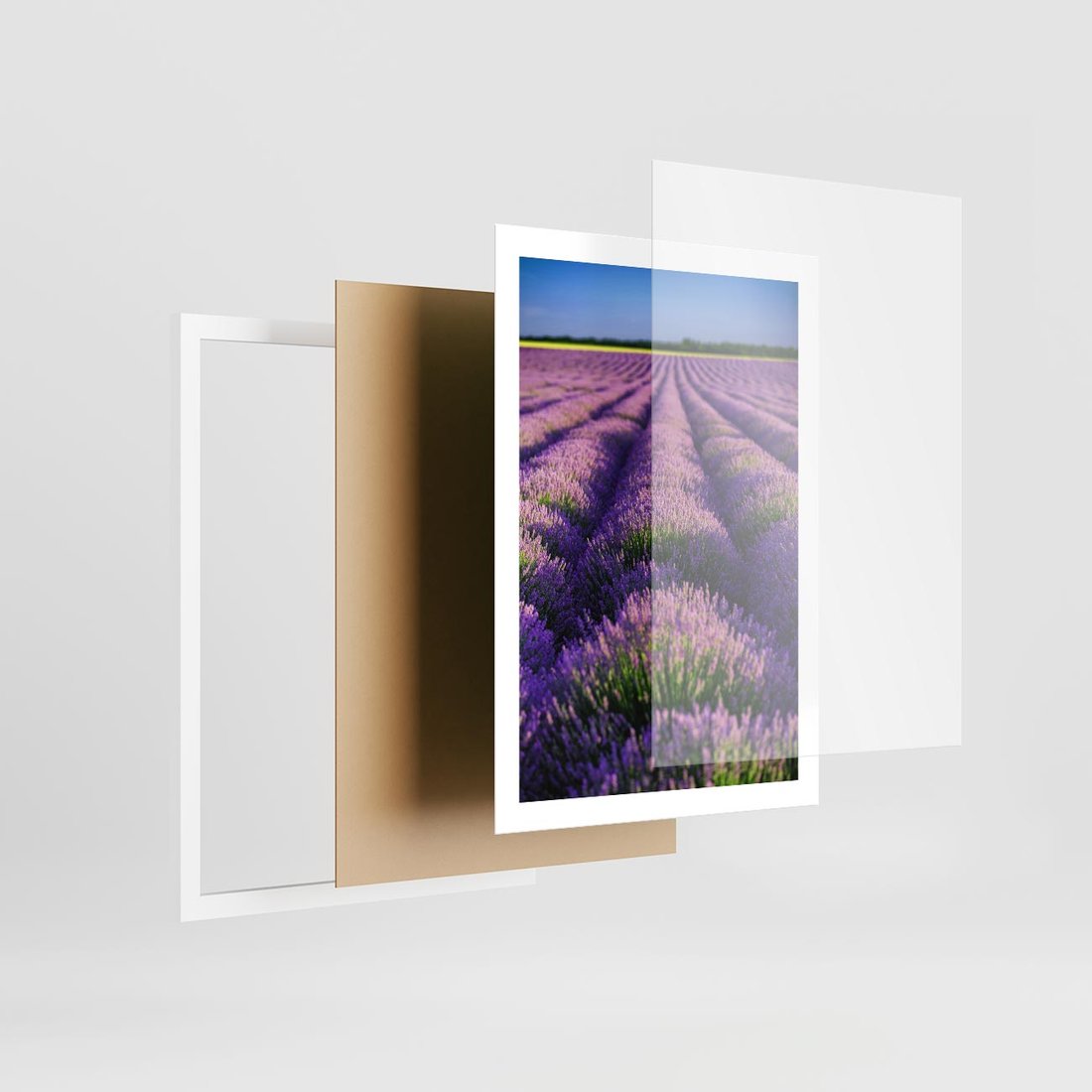 Plakat w ramie 50x70 - Malownicze Pole Lawendy - lawenda, pole - rama biała