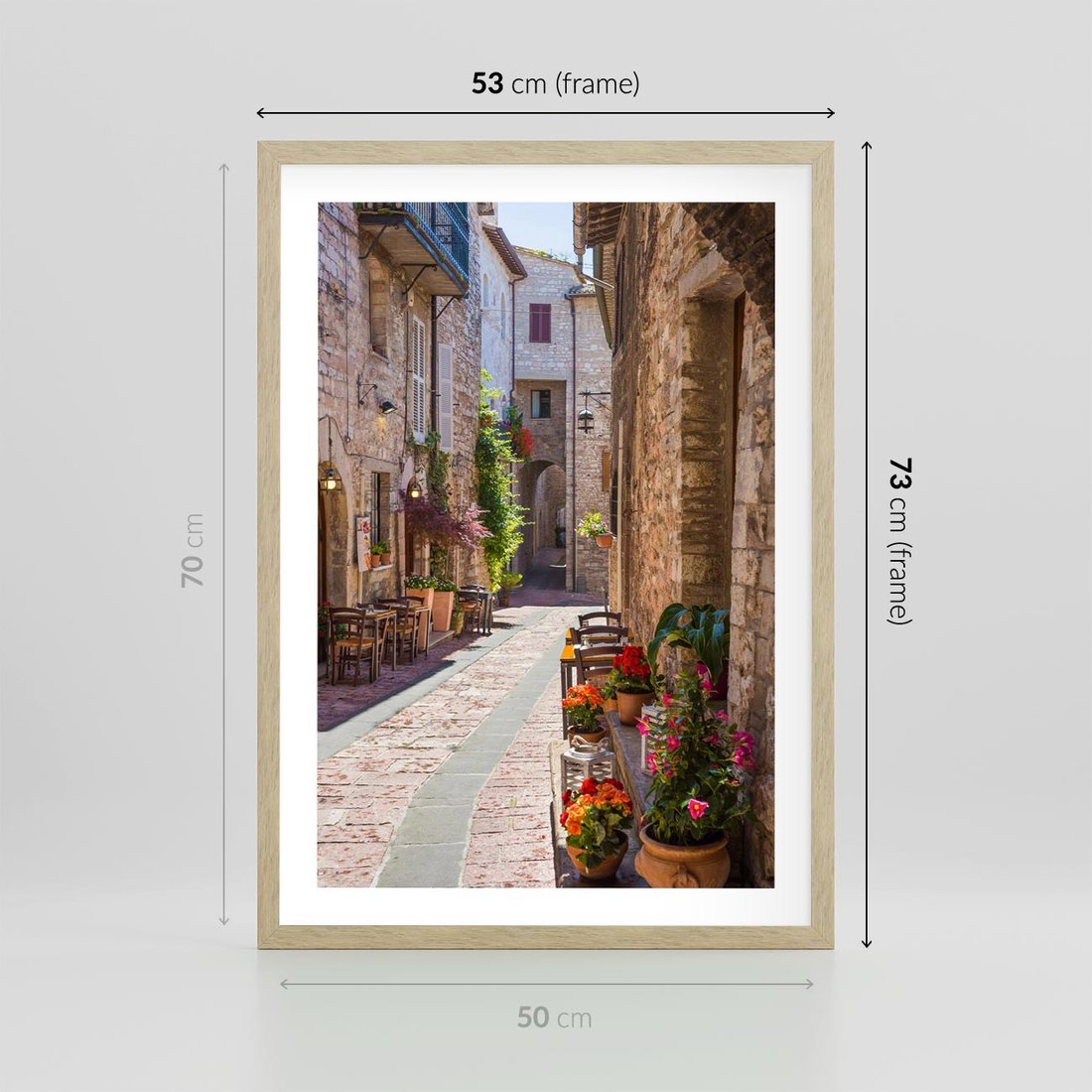 Plakat w ramie 50x70 - Malownicze Zakątki Miasta - uliczka, perspektywa - rama drewno