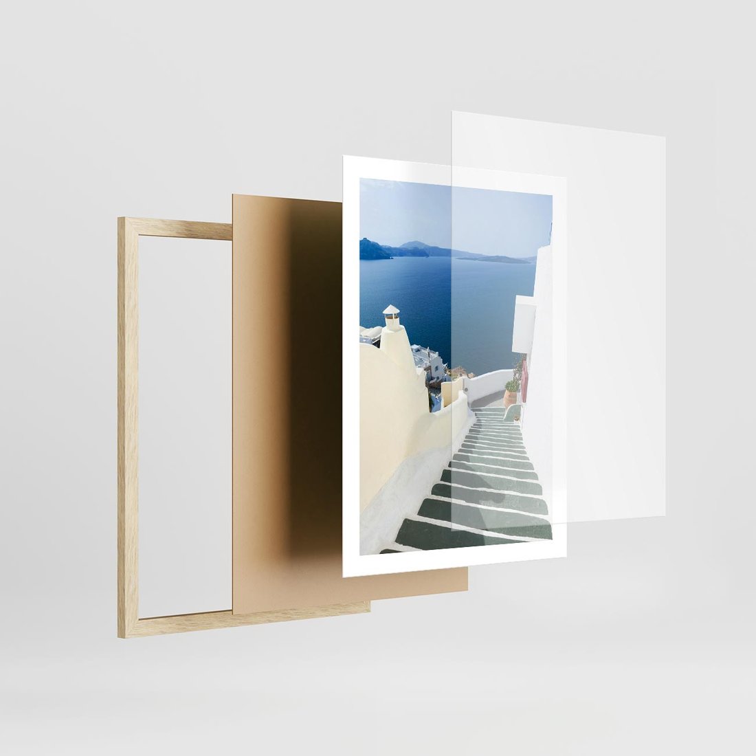 Plakat w ramie 50x70 - Malowniczy urok wyspy - Santorini, schodki - rama drewno