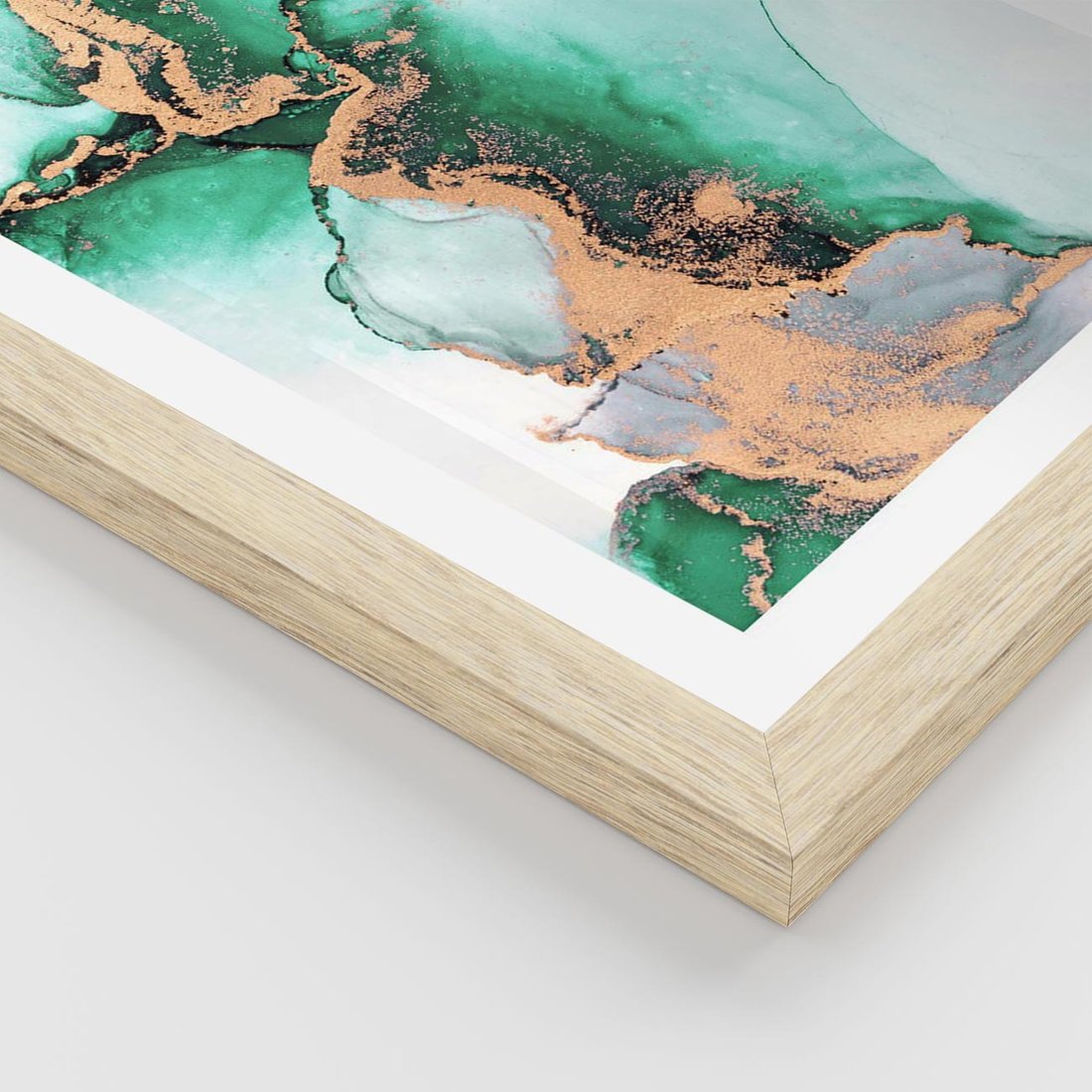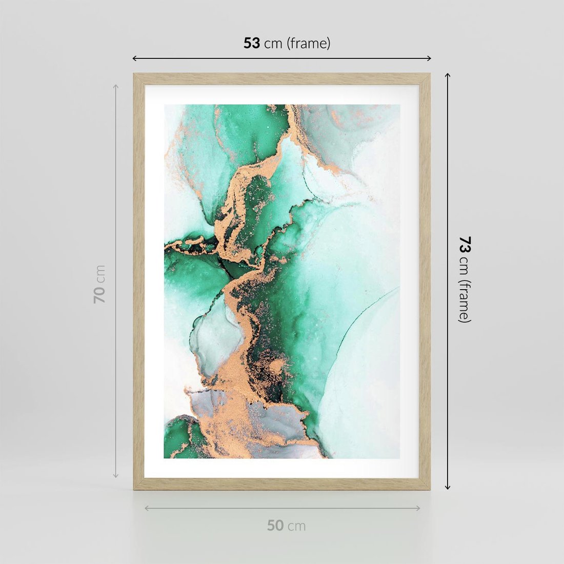 Plakat w ramie 50x70 - Marmur, Zieleń i Złoto - marmur, zieleń i złoto - rama drewno