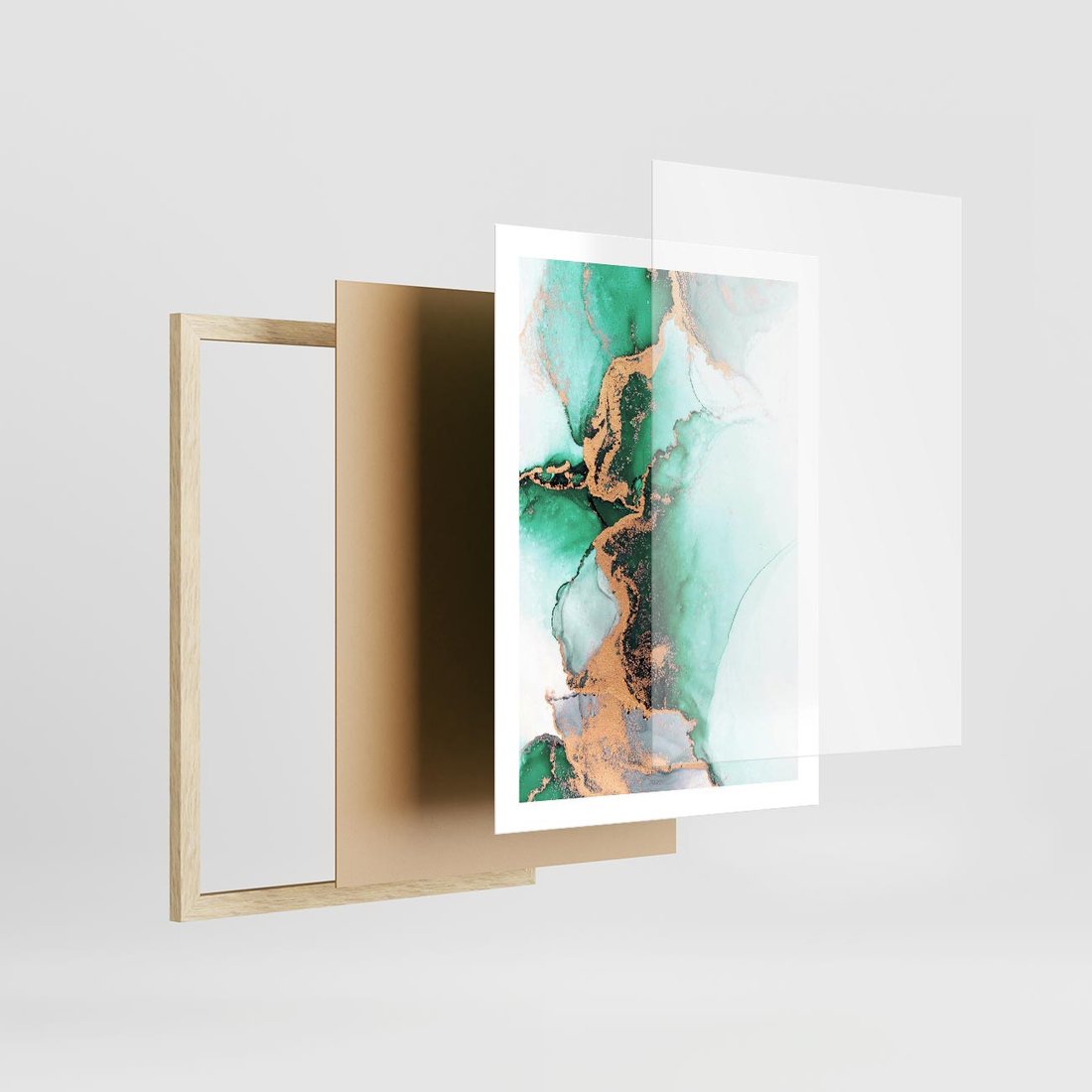 - Plakat w ramie 50x70 - Marmur, Zieleń i Złoto