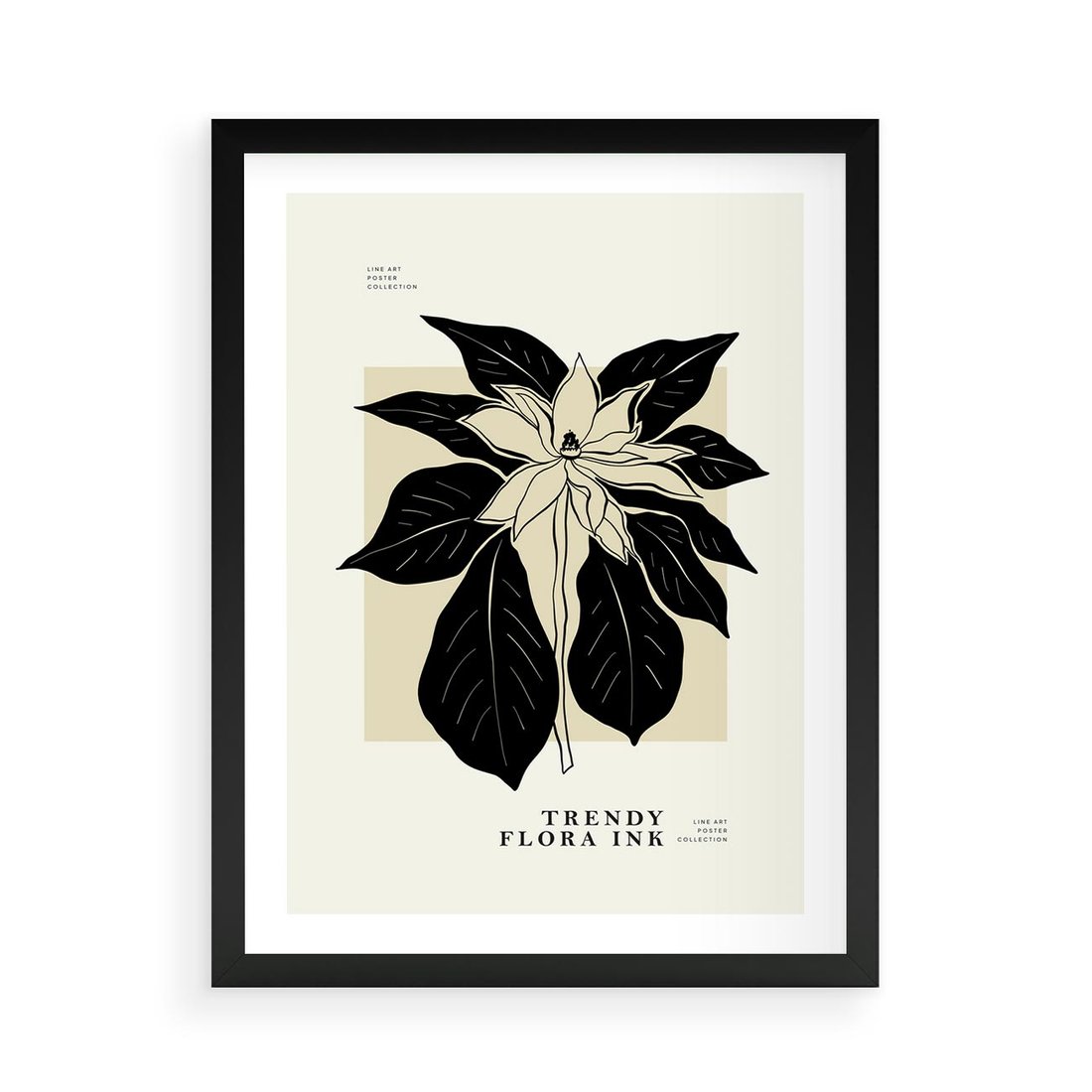 Piękno kwiatów spotyka elegancką typografię w duchu minimalizmu. Czarne kontury i monochromatyczne kolory tworzą subtelny związek. Ten obraz w minimalistycznym stylu doskonale wpasuje się w różnorodne wnętrza, dodając im delikatny akcent roślinności i estetycznego uproszczenia.