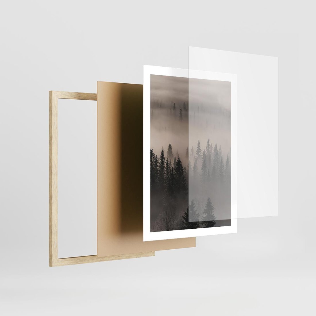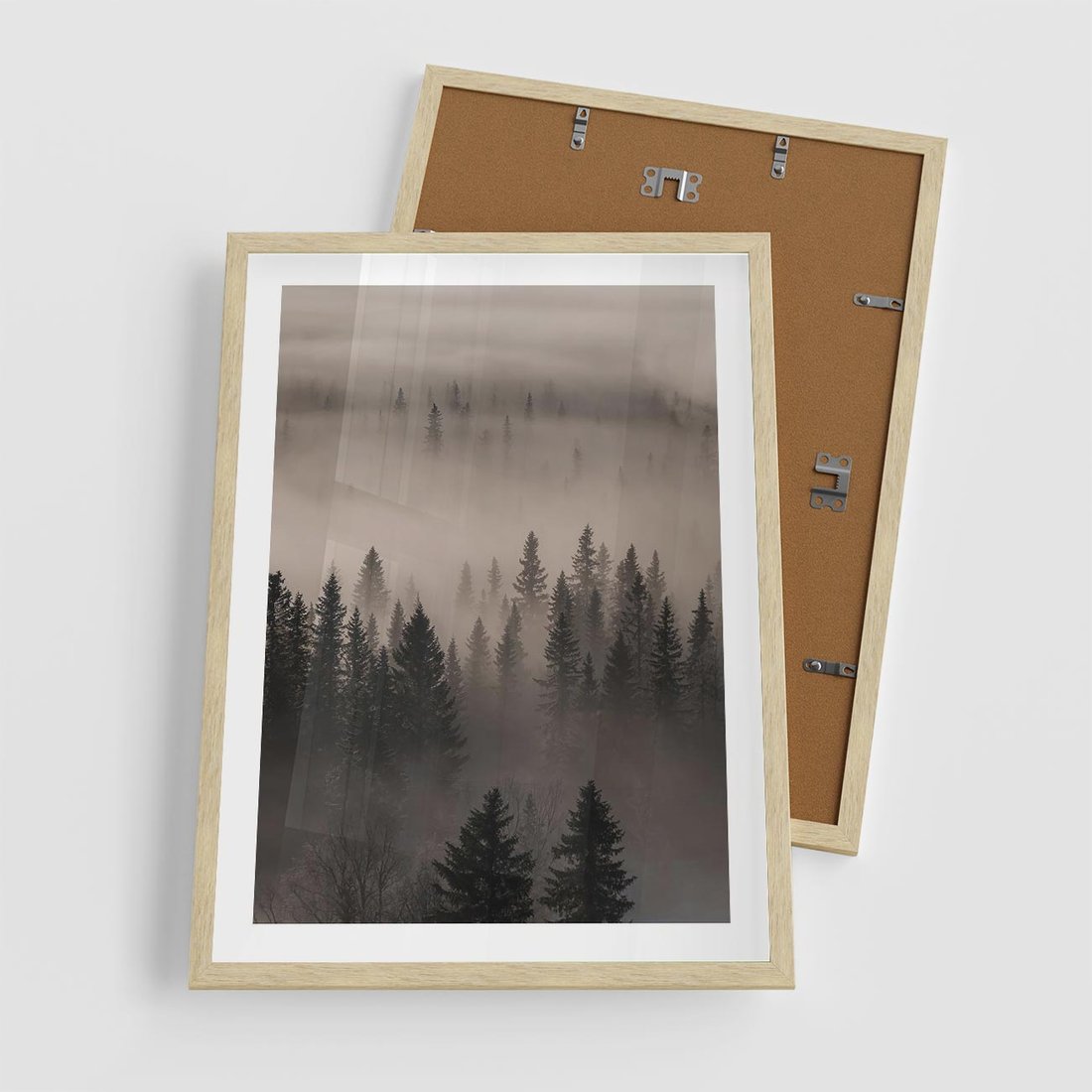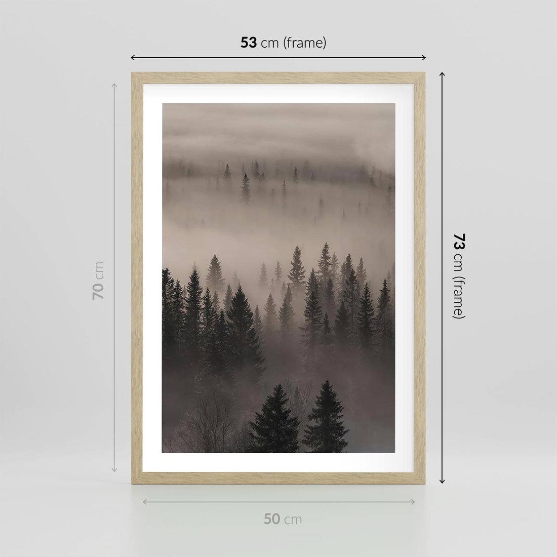 Plakat w ramie 50x70 - Mglista Opowieść Lasu - las, mgła - rama drewno
