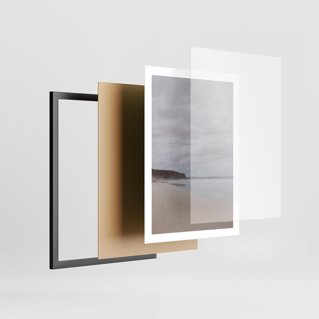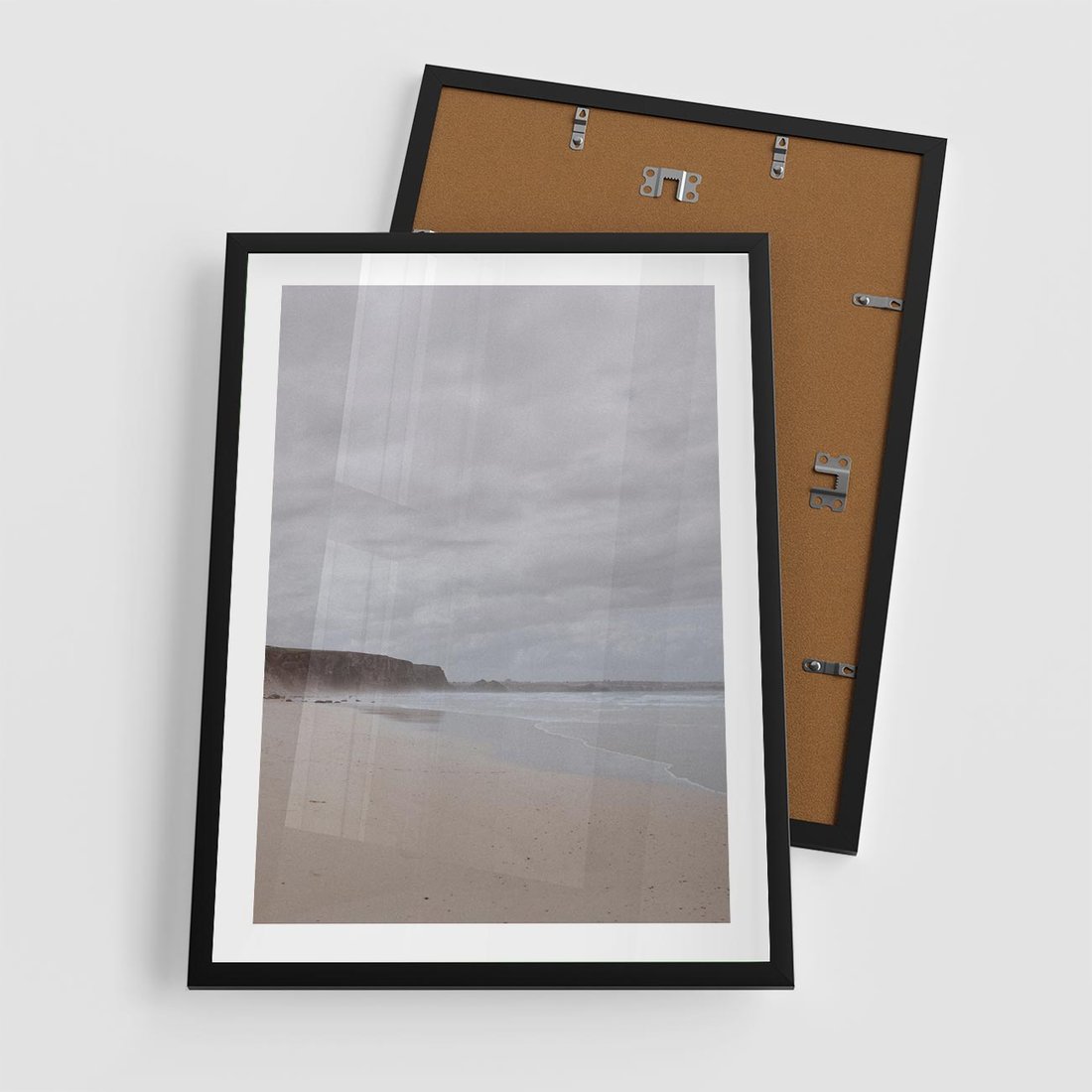 Plakat w ramie 50x70 - Mglista plaża - plaża, mgła - rama czarna
