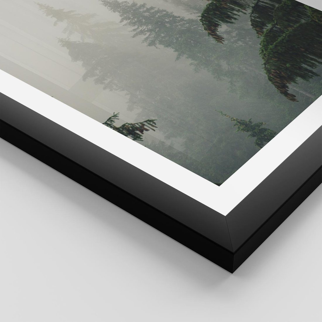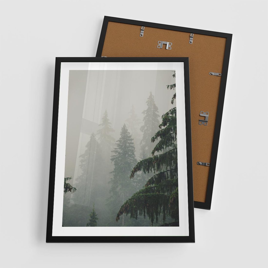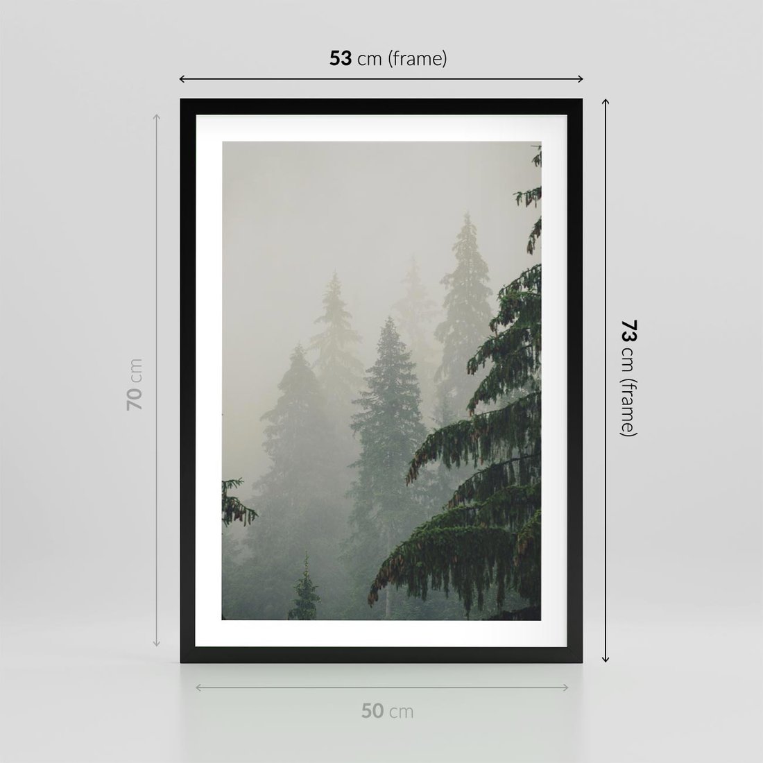 Plakat w ramie 50x70 - Mglista przemiana lasu - las, mgła - rama czarna