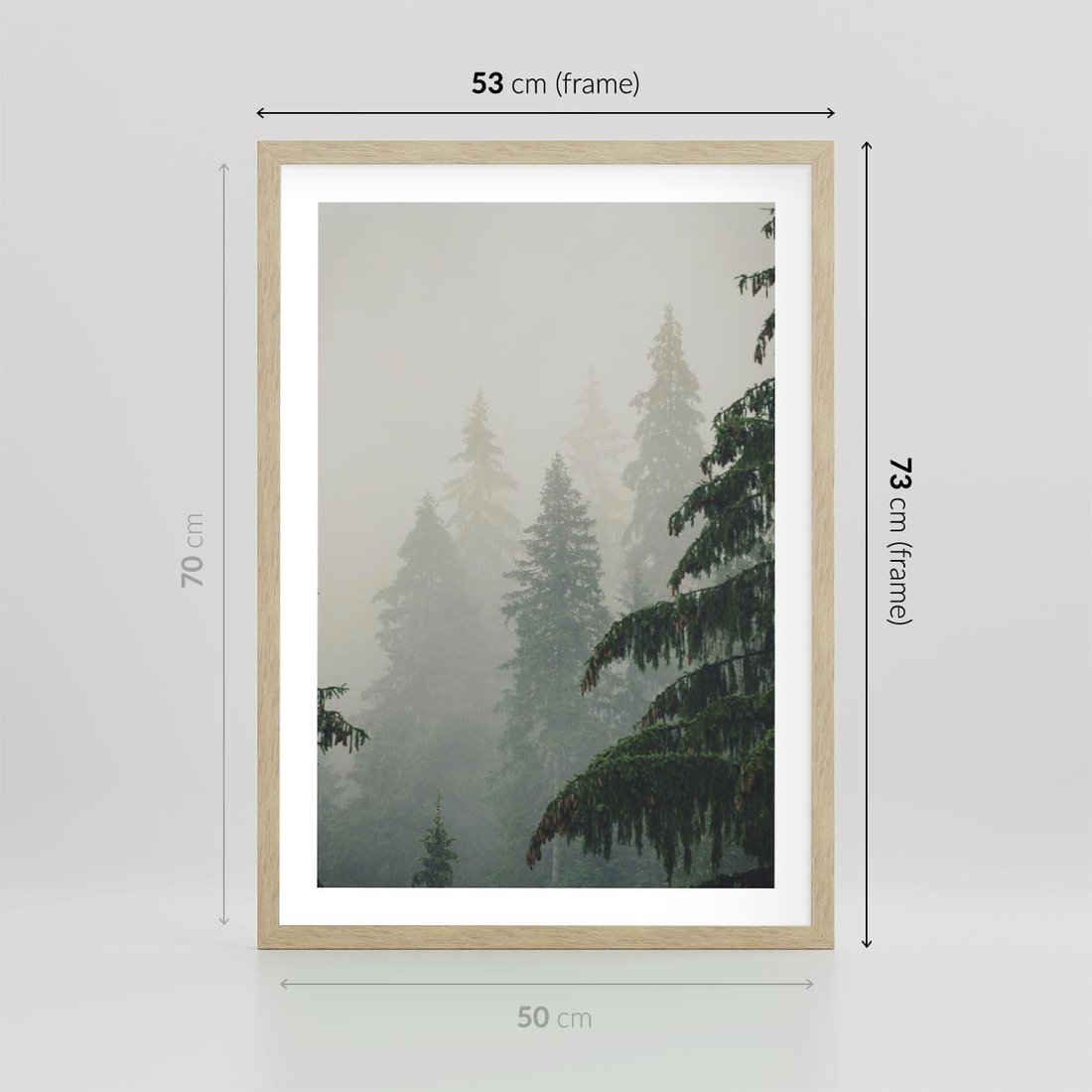 Plakat w ramie 50x70 - Mglista przemiana lasu - las, mgła - rama drewno