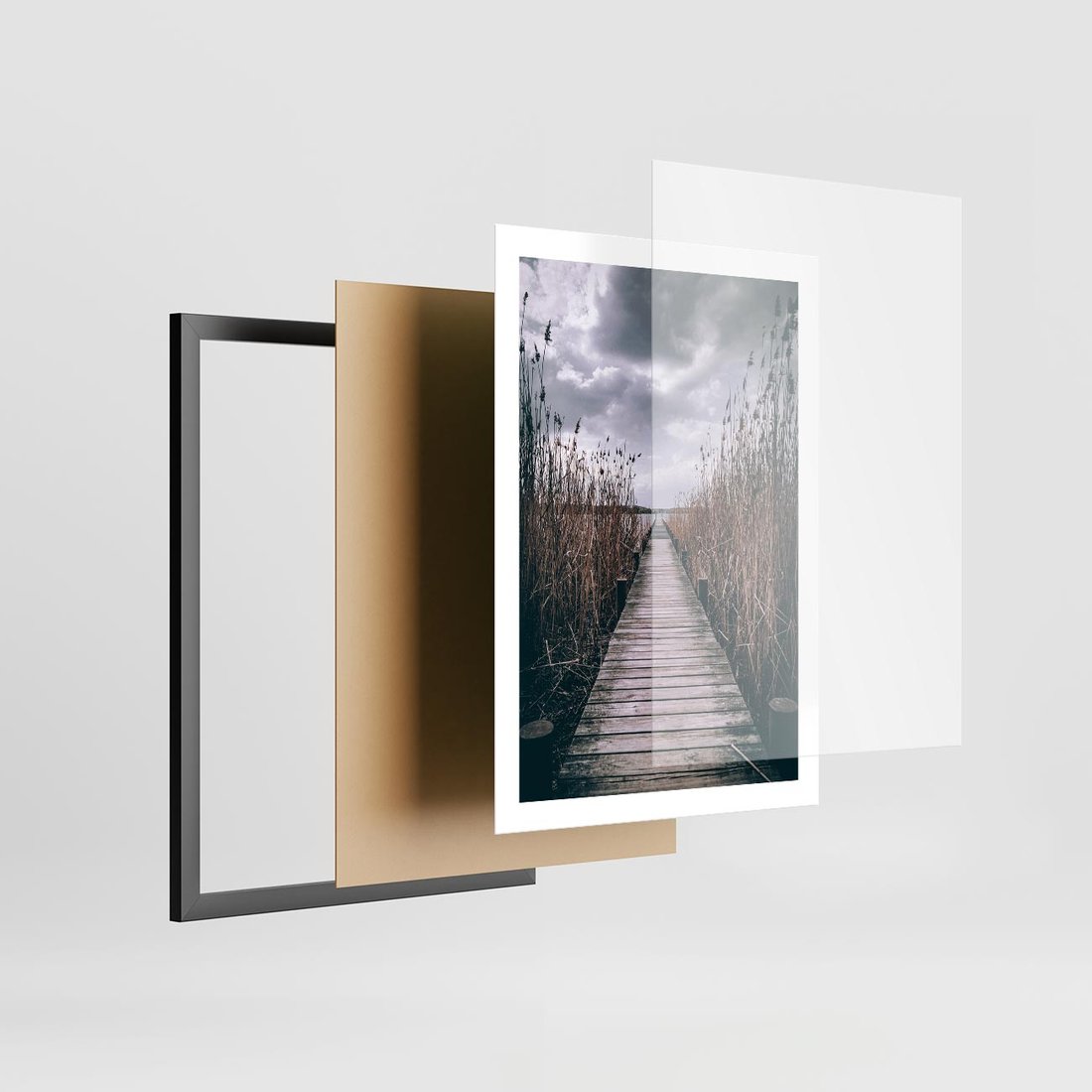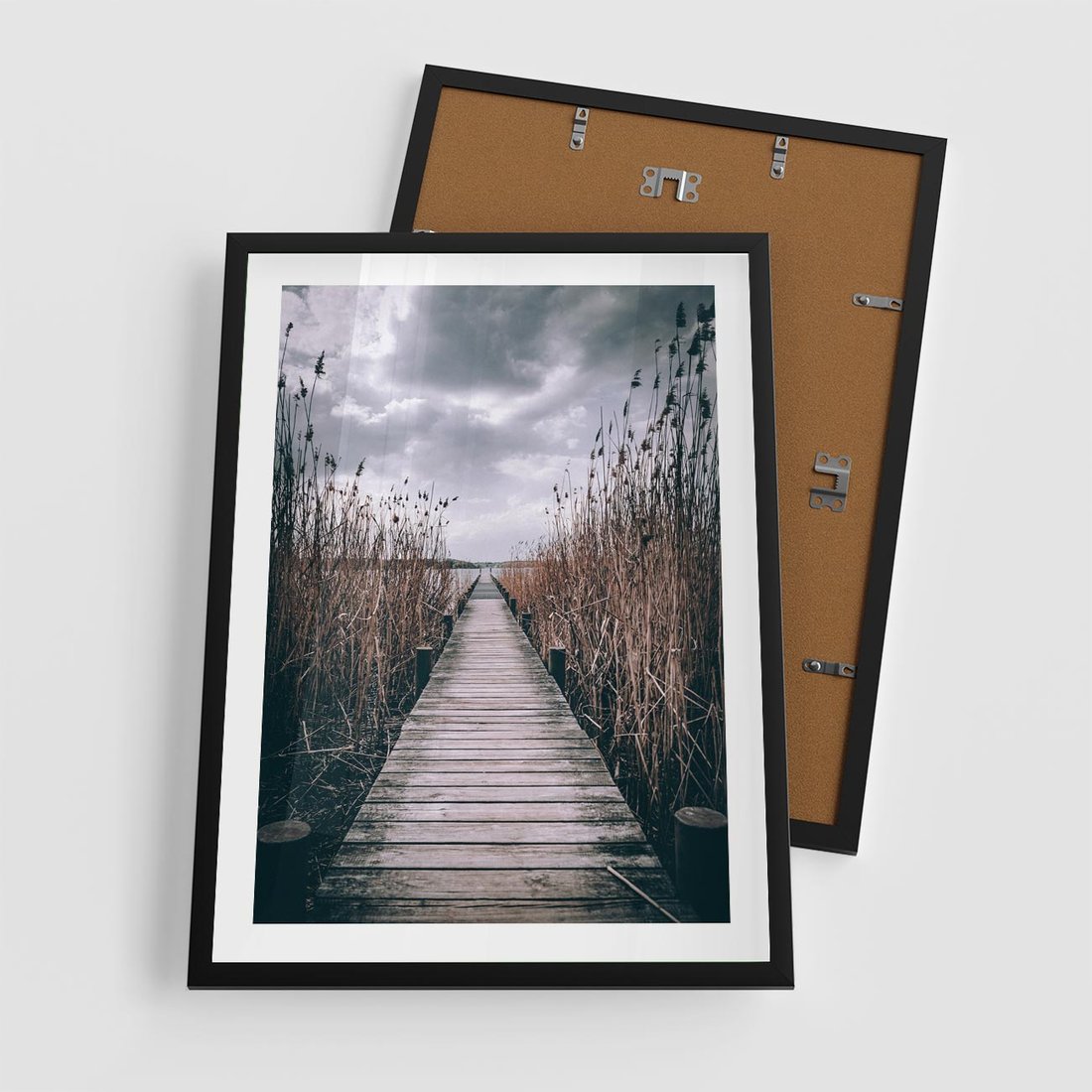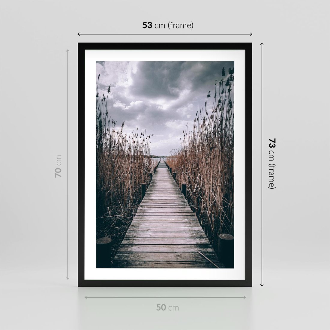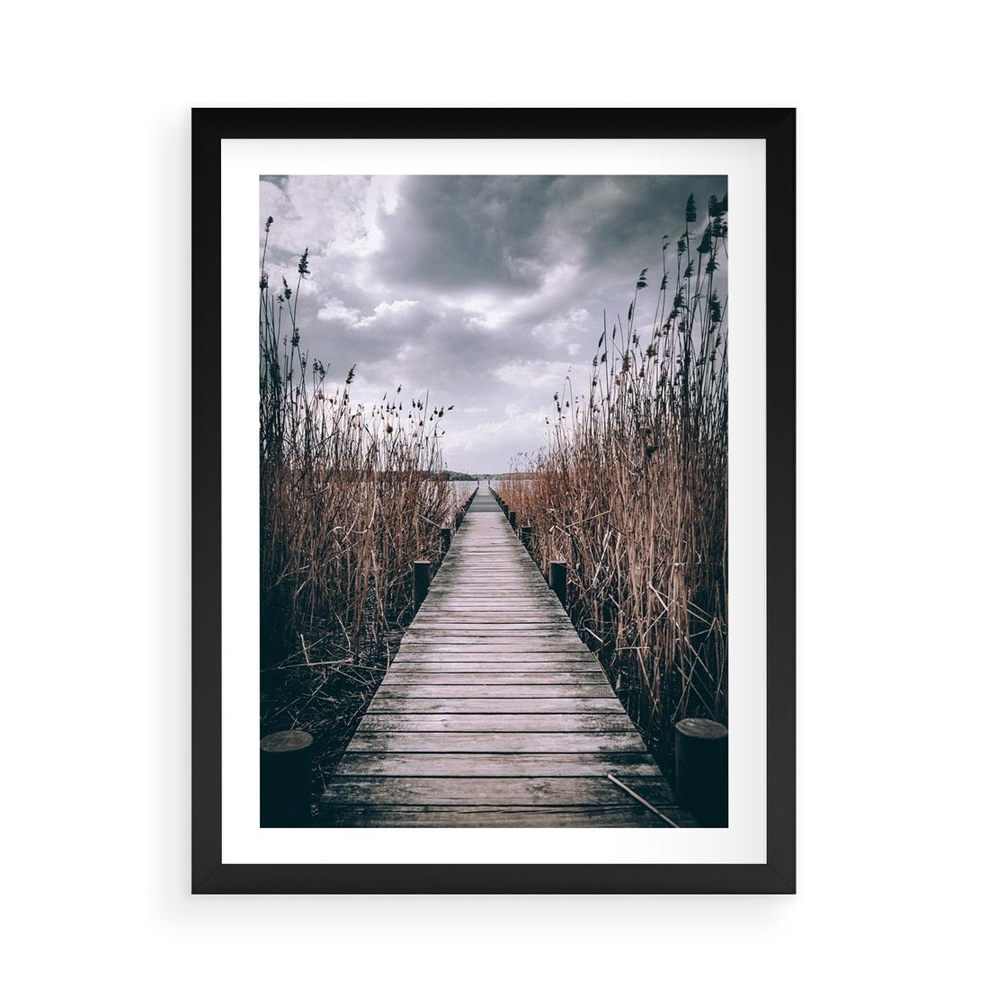 Plakat w ramie 50x70 - Mglisty krajobraz - pomost, morze - rama czarna