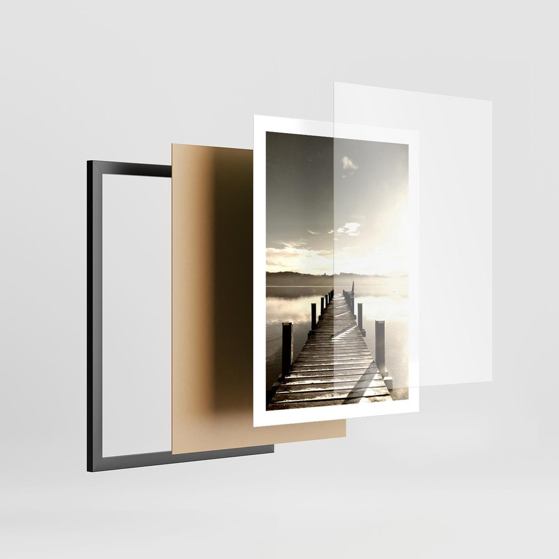 Plakat w ramie 50x70 - Mglisty poranek na pomostcie - pomost, mgła - rama czarna