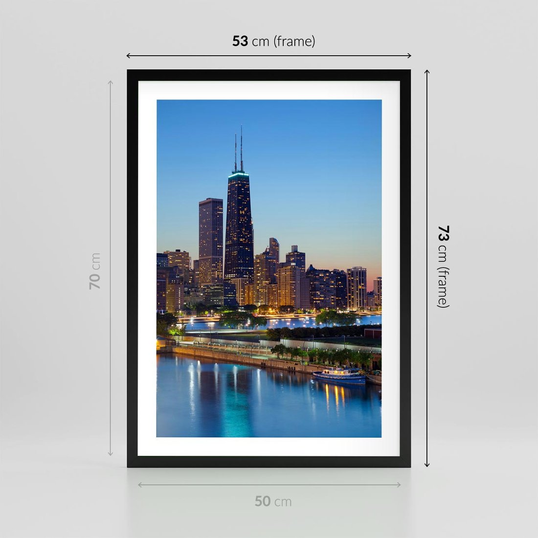 Plakat w ramie 50x70 - Miasto nad Rzeką - miasto, rzeka - rama czarna
