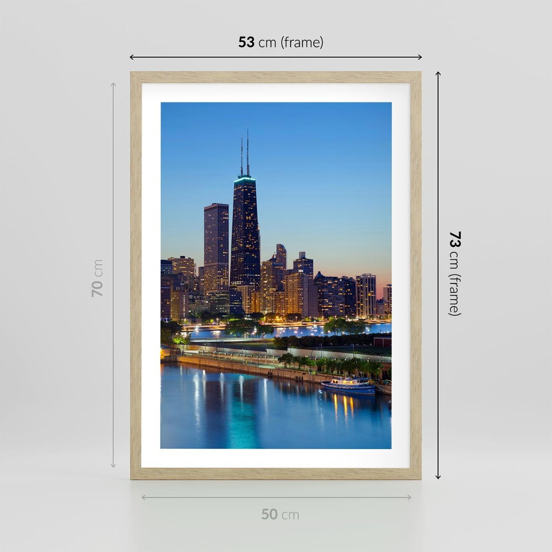 Plakat w ramie 50x70 - Miasto nad Rzeką - miasto, rzeka - rama drewno