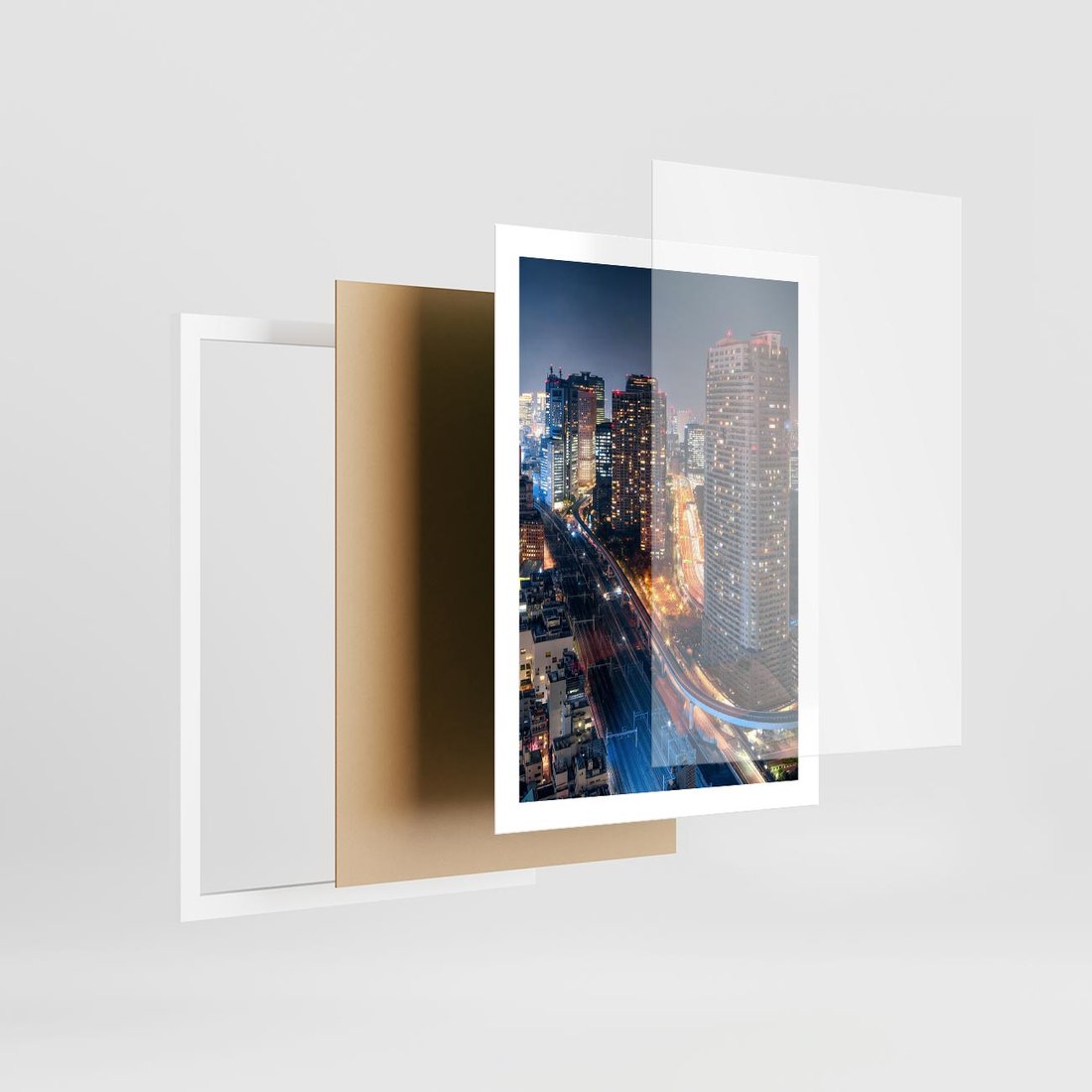- Plakat w ramie 50x70 - Miasto nocą z wieżowcami w tle