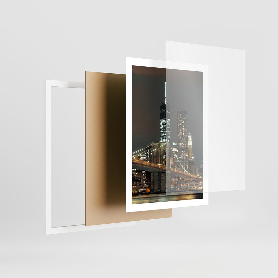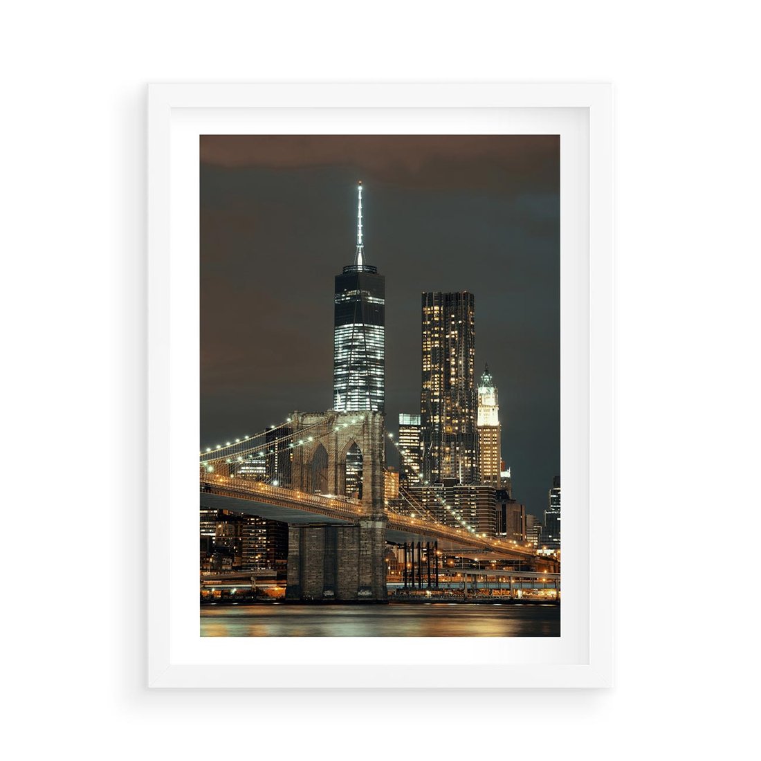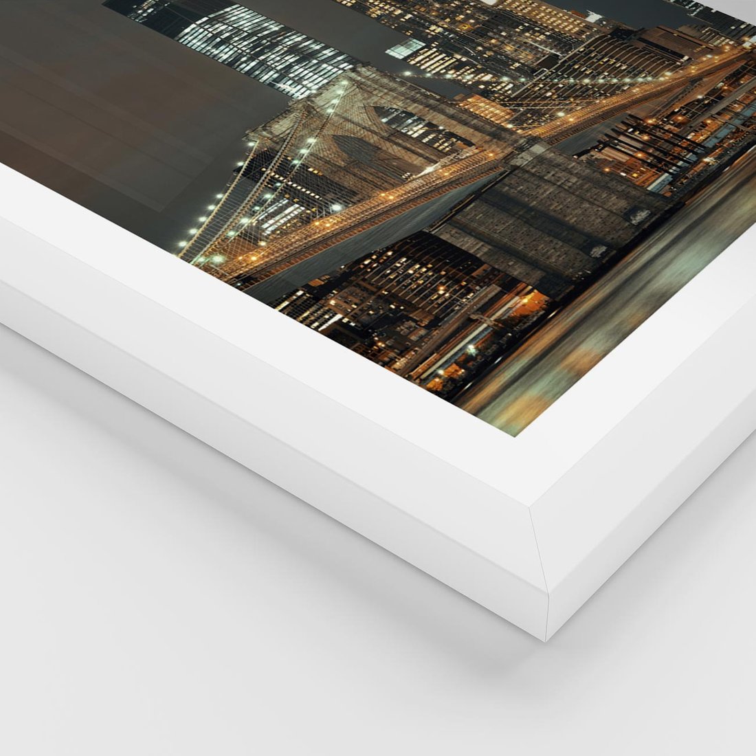 Plakat w ramie 50x70 - Miasto rozświetlone nocnym blaskiem - miasto, nocą - rama biała