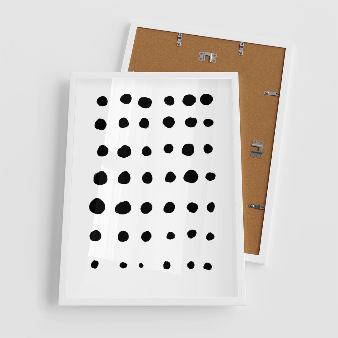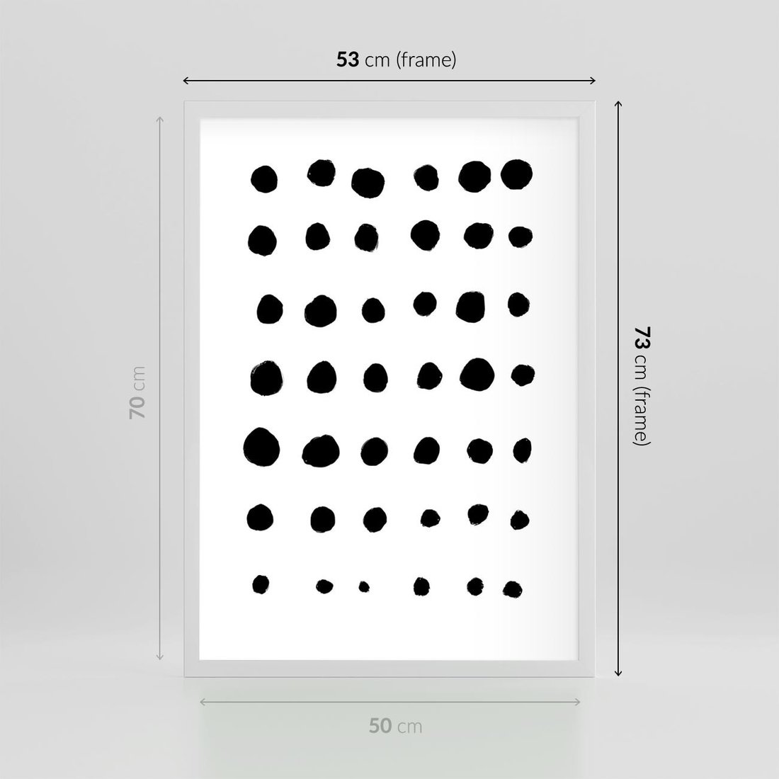 Plakat w ramie 50x70 - Migocące Anomalie - abstrakcyjna kompozycja z czarnych kropek, minimalistyczny czarno bialy plakat - rama biała