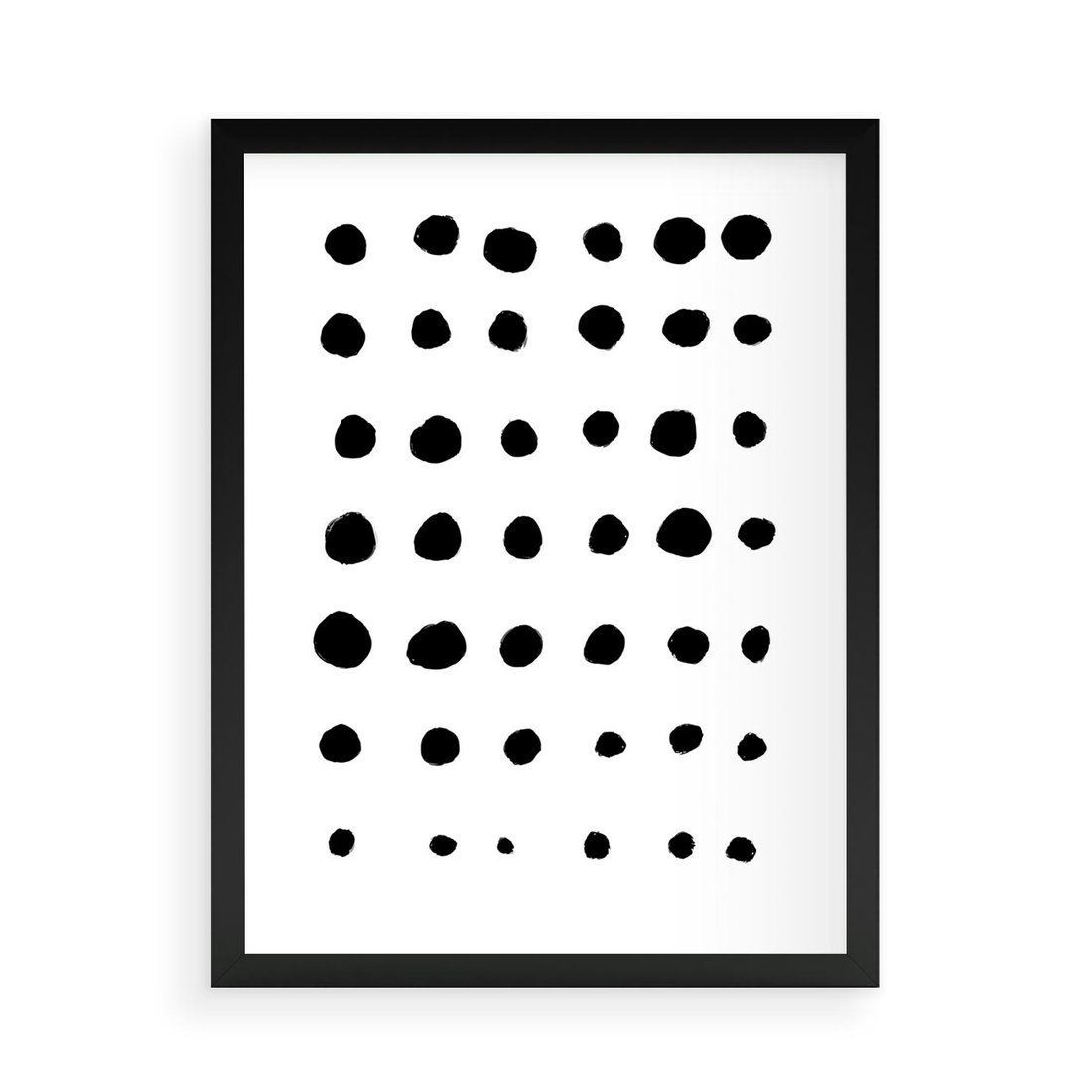 Plakat w ramie 50x70 - Migocące Anomalie - abstrakcyjna kompozycja z czarnych kropek, minimalistyczny czarno bialy plakat - rama czarna