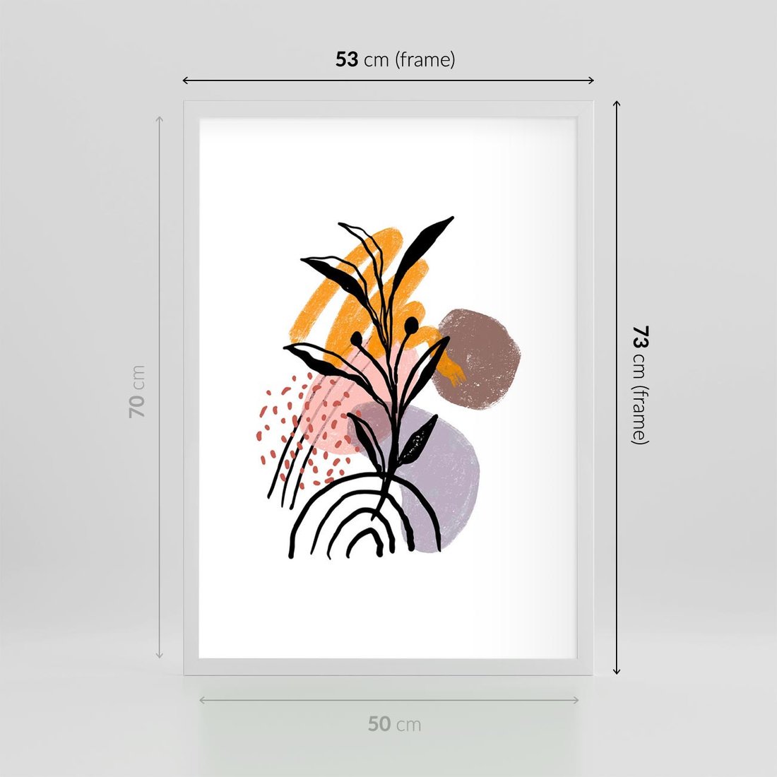 Plakat w ramie 50x70 - Migocące Bezgraniczności - abstrakcyjna sztuka, liść monstery - rama biała