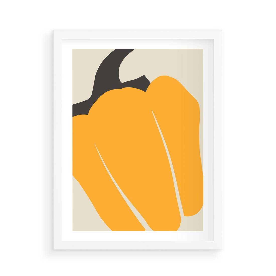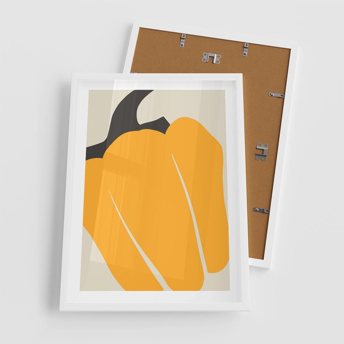 Plakat w ramie 50x70 - Migocące Formy - abstrakcyjny minimalistyczny obraz, żółta papryczka - rama biała