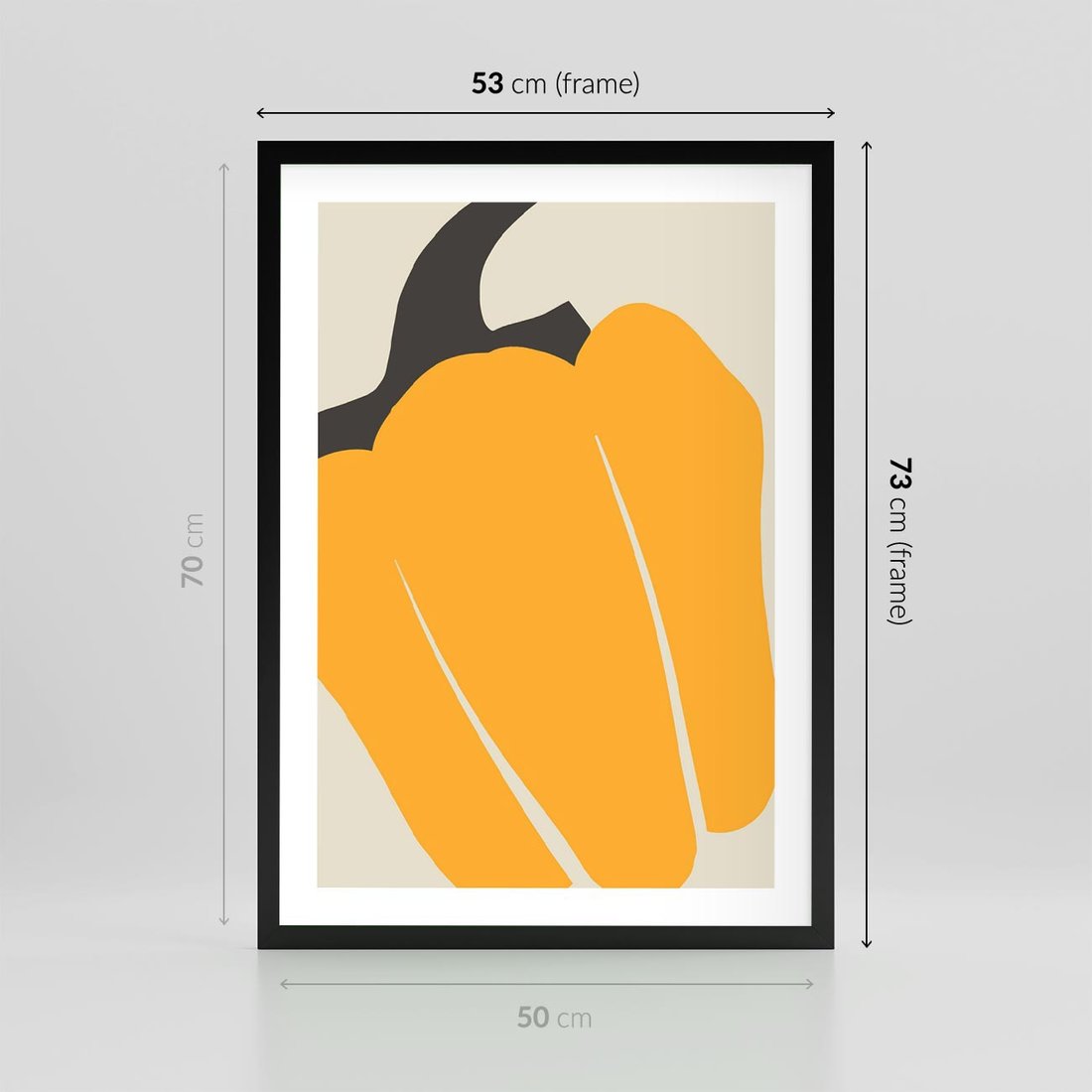 Plakat w ramie 50x70 - Migocące Formy - abstrakcyjny minimalistyczny obraz, żółta papryczka - rama czarna