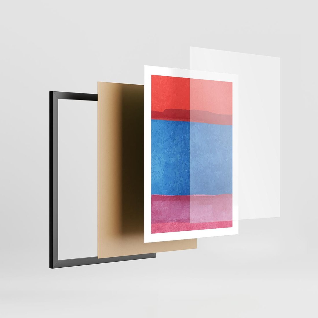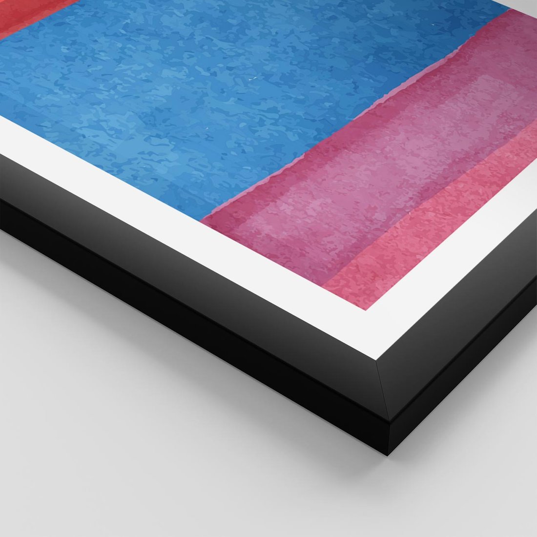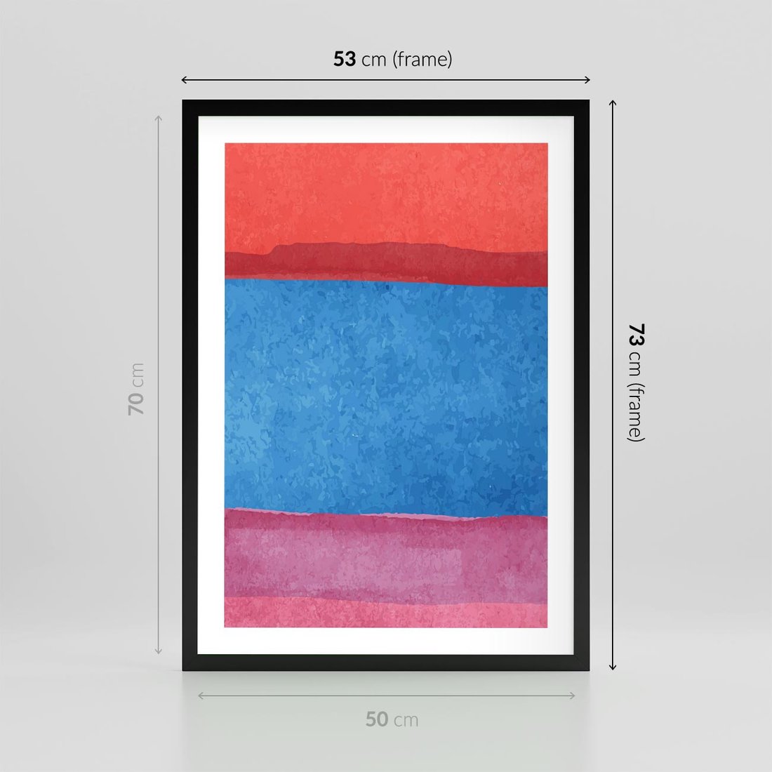 Plakat w ramie 50x70 - Migocące Formy - kolorowe akwarelowe pasy, odcienie czerwień - rama czarna