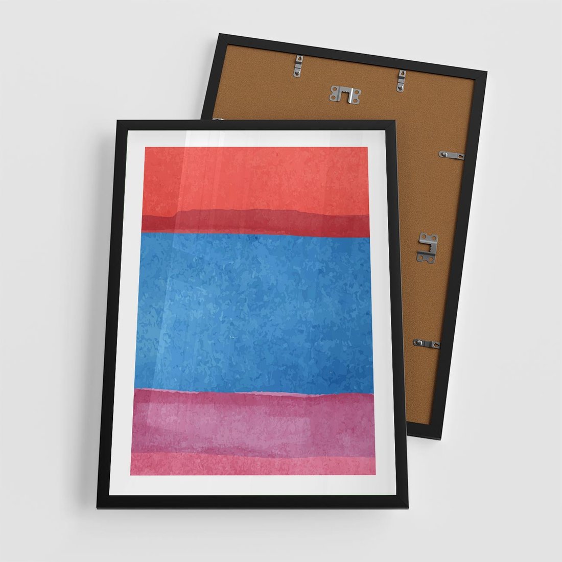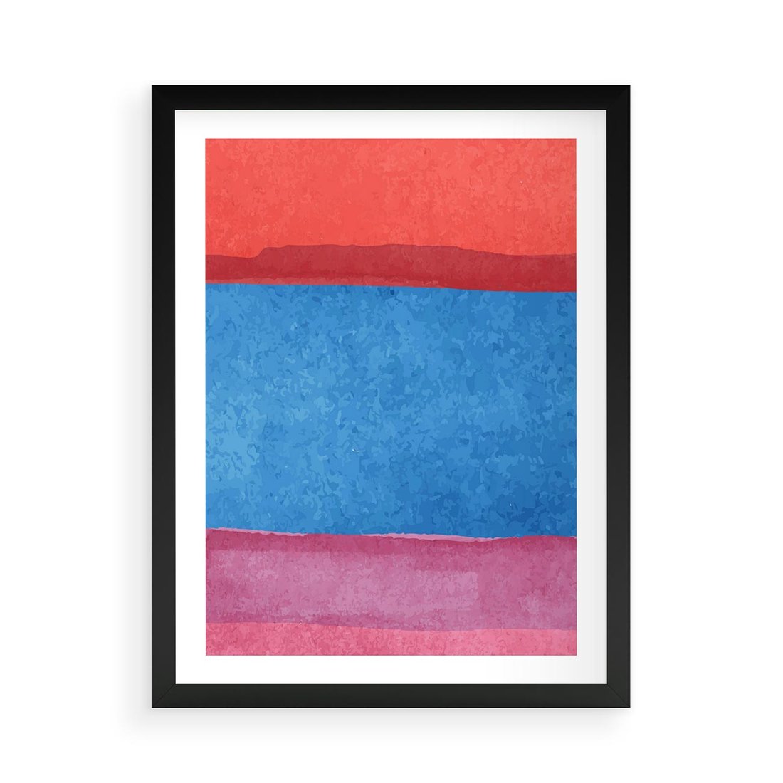 Ten nowoczesny obraz ożywia każde wnętrze dzięki kolorowym akwarelowym pasom w odcieniach czerwieni, fioletu i niebieskiego. To wyjątkowa kompozycja, która dodaje charakteru i życia.