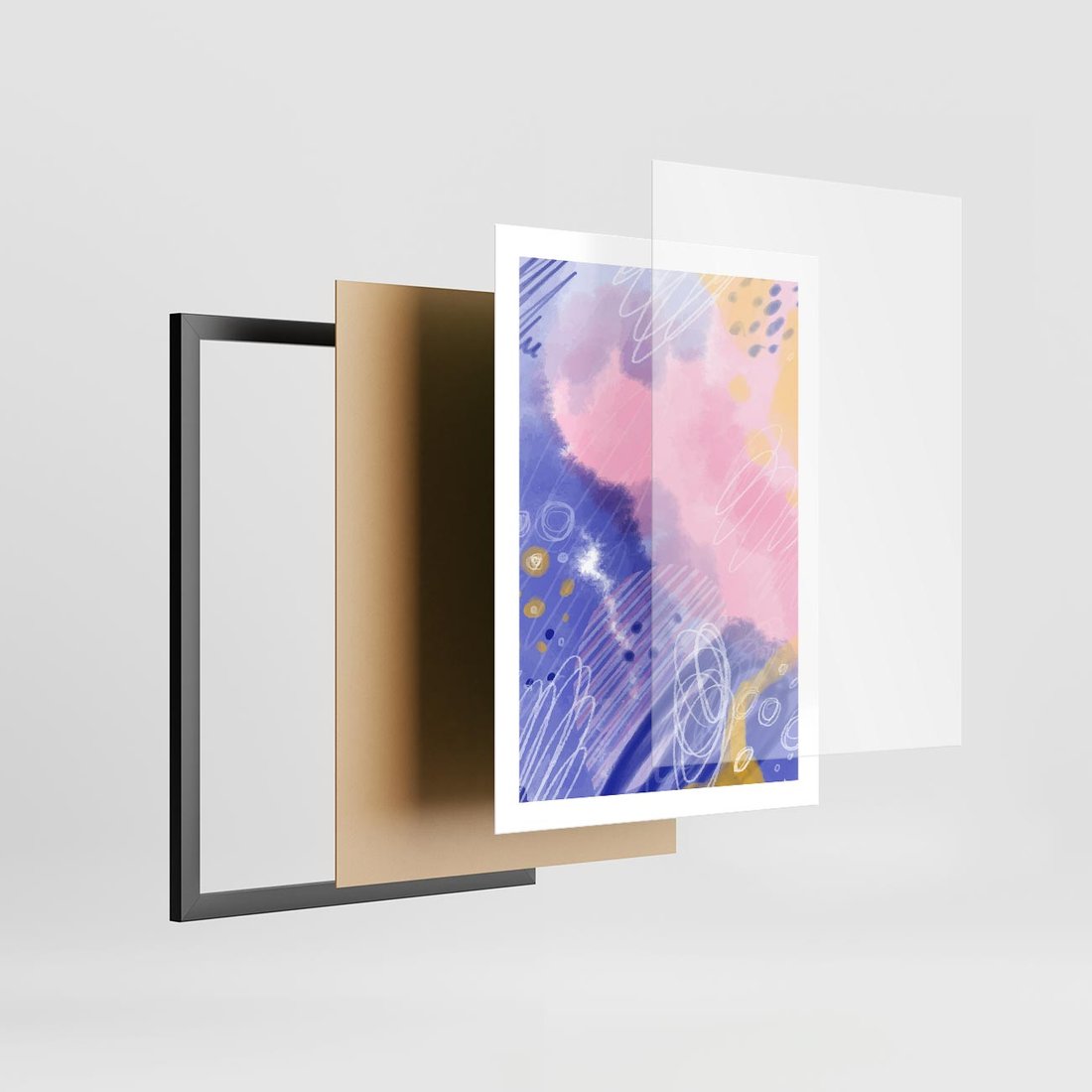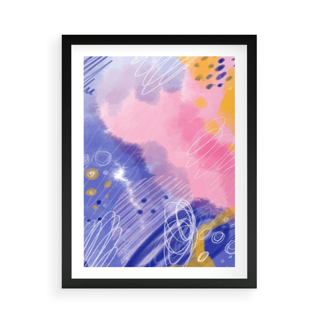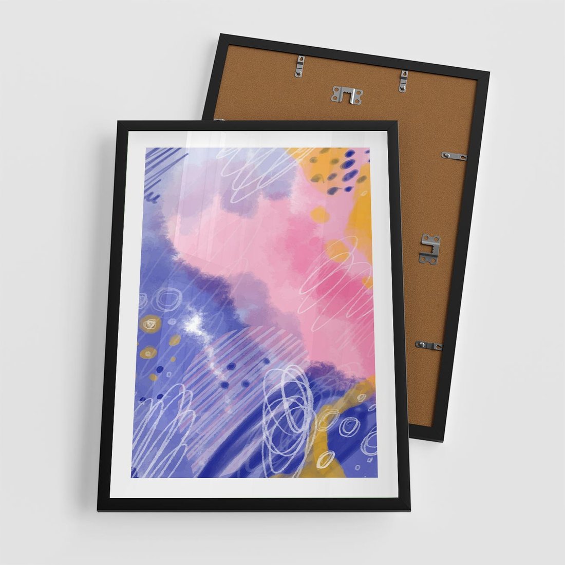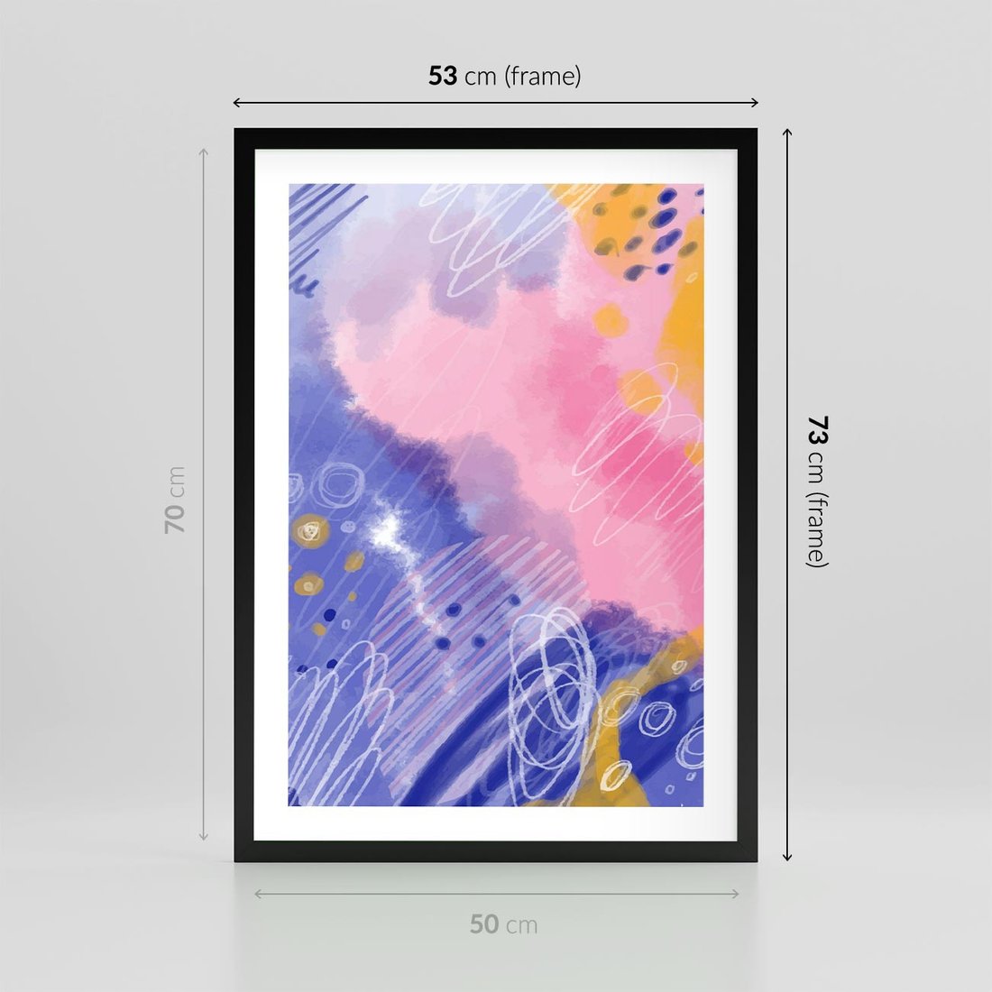 Plakat w ramie 50x70 - Migocące Granice Kształtów - abstrakcyjny plakat, pastelowe kolory - rama czarna